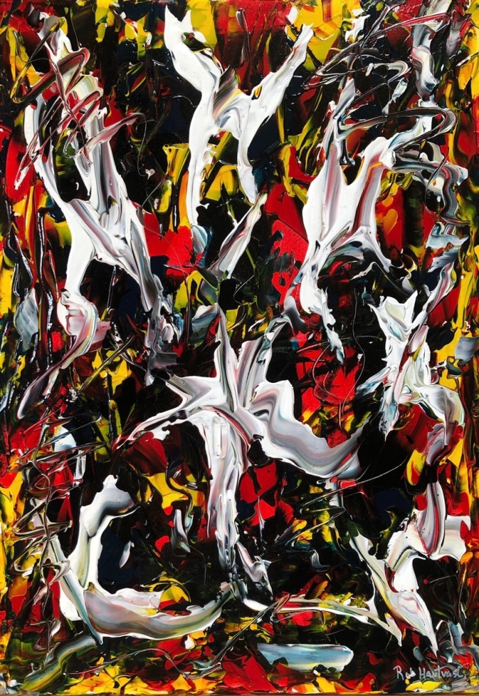 Expressief werk uitgevoerd in acrylverf op stevig canvas. Techniek nat op nat, met spatel mes en kwast. Rob Hautvast, geboren in Den Haag, woonachtig in Zutphen, is een kunstschilder die zijn sporen heeft verdiend als internationaal fotograaf en als Art Director van diverse bureaus. Tentoonstellingen in verschillende galeries en verkoop via nationale en internationale veiling sites. De werken van Rob Hautvast zijn wereldwijd verkocht en hangen aan vele huiskamer, slaapkamer en kantoor muren