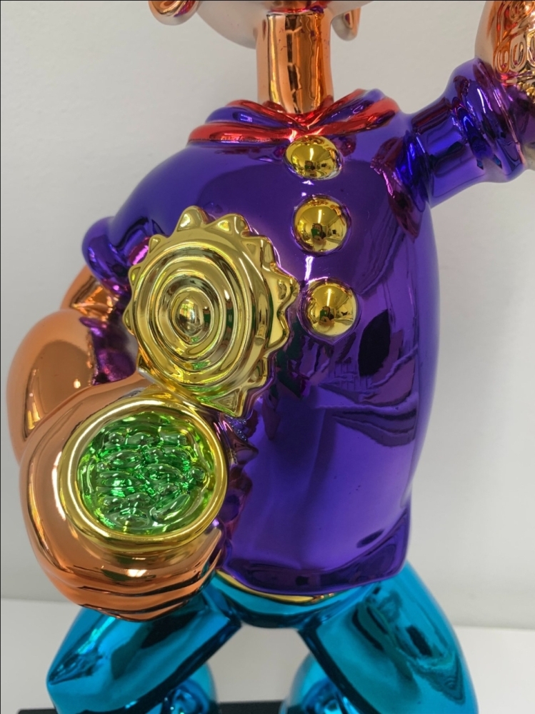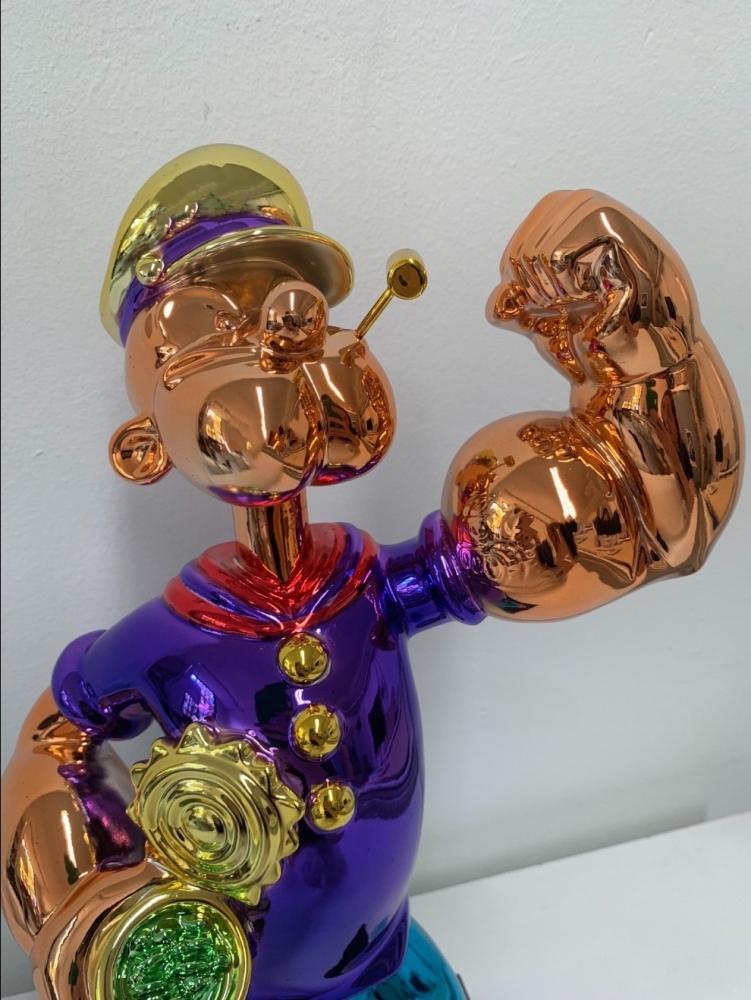 Popeye sculptuur naar Jeff Koon's Popeye uit 2009-2011. Tussen 2009 en 2011 werden drie Popeye-sculpturen gemaakt uit staal, elk 2 meter hoog. Dit kleine beeldje is een replica van de beroemde modellen van Koons.