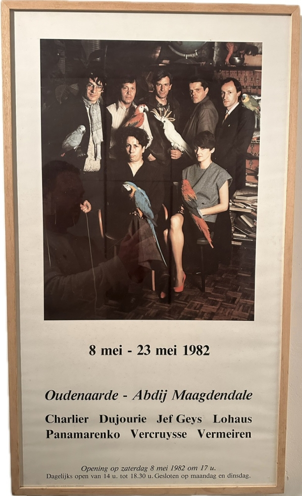 Affiche op glanspapier, professioneel ingelijst. Zeer zeldzame affiche Deze kunstenaars zijn: Lili Dujourie, Jef Geys, Panamarenko, Jacques Charlier, Didier Vermeiren, Jan Vercruysse en Bernd Lohaus.
