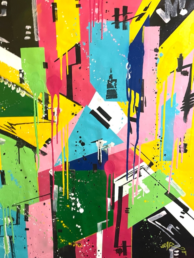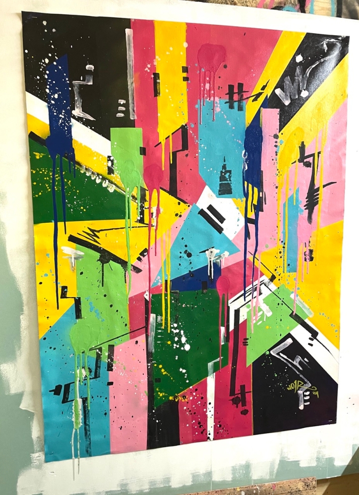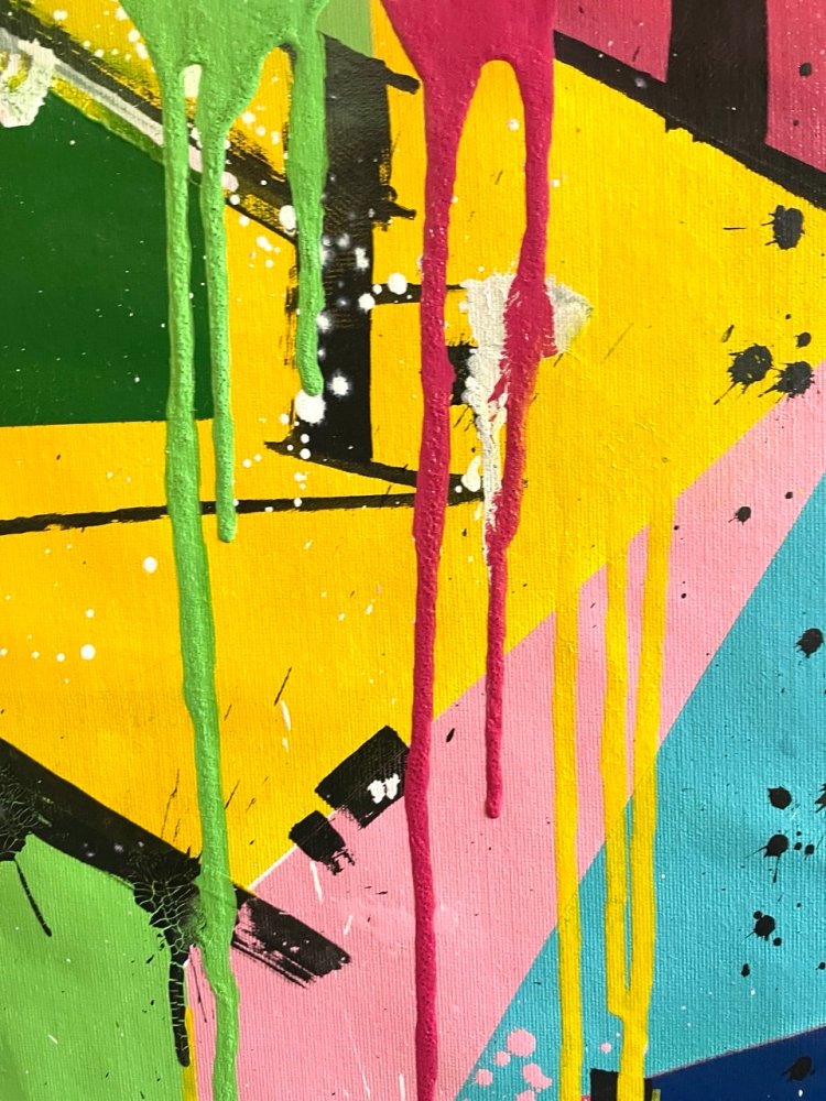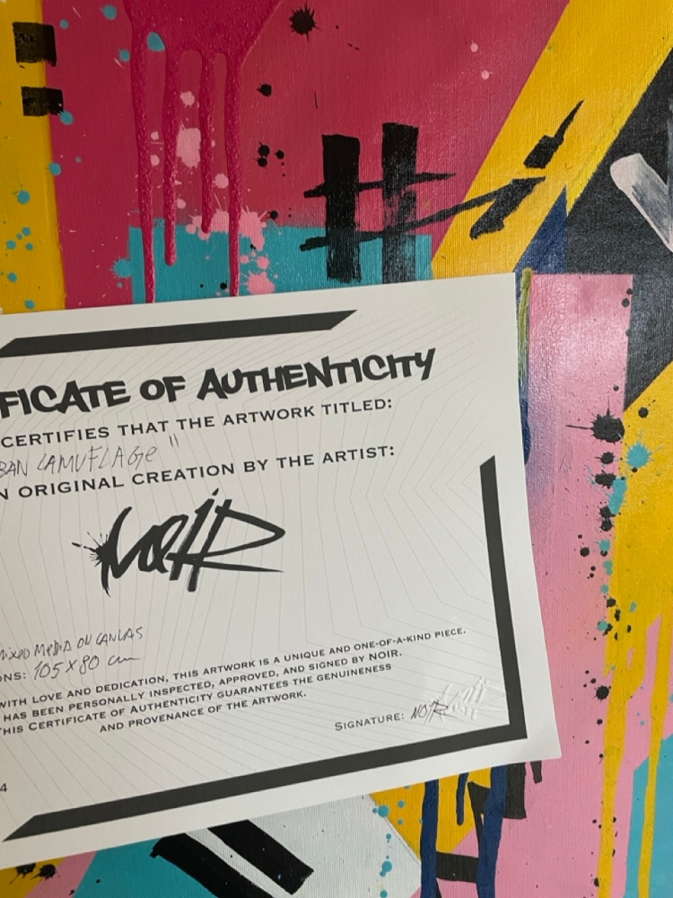 COLLECTOR'S ITEM! "Urban Camuflage" Introducing an exceptional interpretation of this Noir's piece, this artwork is a mixed media on canvas titled "Urban Camuflage"" This exclusive edition highlights the artist's passion In every stroke, Noir's work reflects an unwavering commitment to the art form. -This is a unique work of art, hand-signed and with a certificate of authenticity, delivered to your door. -Sent rolled in a tube. -This is a Mixed Media Artwork on canvas, so you should expect some flaws, imperfections splatters, small cracks or wrinkles can also happen, and when it does, it's part of the artwork. This is just the nature of the spray on canvas. -Sent rolled in a tube. -Colors may shift due light conditions at the moment of the photo. *do not leave it in the tube Noir, a passionate artist, discovered her deep-seated love for Urban art and Illustration from a tender age. Over the years, Noir's artistic journey has unfurled, expanding the skills into various creative realms, including concept art and digital painting, music, 3d sculpt and traditional painting.