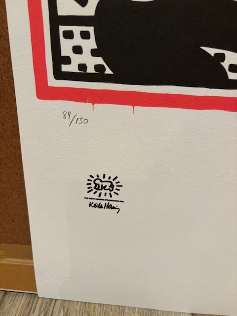 Zeer mooie litho van pop art kunstenaar Keith Haring, gesigneerd in druk. Werk is genummerd en uitgegeven op 150 exemplaren, waarvan het aangeboden werk nummer 89 betreft. Voorzien van blinde stempel van Keith Haring Foundation. Merk op dat de Keith Haring Foundation al vele jaren geen certificaat van echtheid (COA) uitschrijft. Werken van Keith Haring, die niet kunnen gevonden worden in één van de catalogi van Haring, worden daarom bij ArtAuction.online steeds als "after" of "naar" gemarkeerd omdat we deze niet kunnen attesteren.