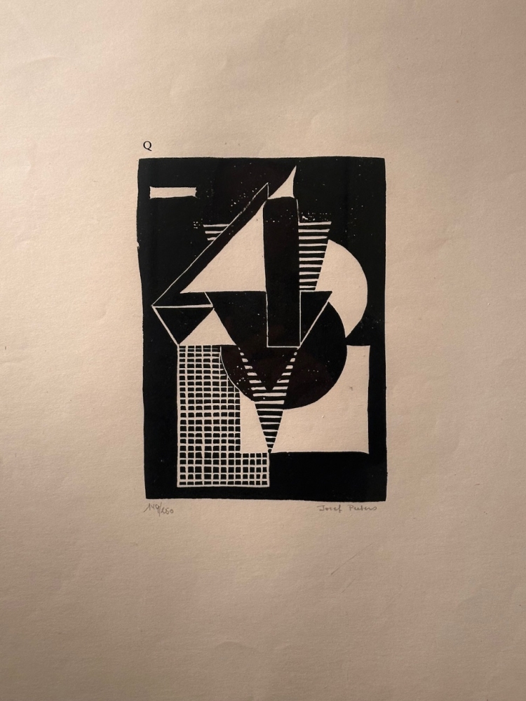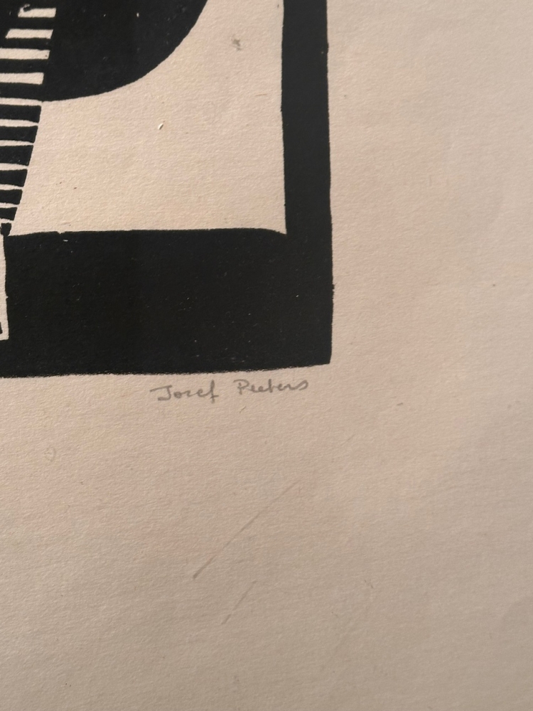 Zeer zeldzame linosnede. Met de hand gesigneerd en genummerd op 250 ex. Josephus Henricus (Jozef) Peeters (Antwerpen, 24 juli 1895 10 september 1960) was een Belgisch graficus en schilder. Hij wordt beschouwd als een van de eerste Belgische abstracte kunstenaars. Hij was zoon van Henricus Camillus Peeters en Paulina Albertina Henrica Beruck. Zelf trouwde hij met Pelagia Pruym.