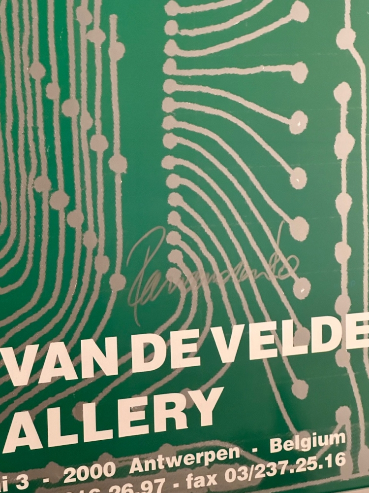 Panamarenko exhibition poster. Signed by hand and framed. Very good condition. Panamarenko, the stage name of Henri Van Herwegen was a Belgian sculptor. He is considered one of the most important Belgian sculptors of the second half of the 20th century. He made many assemblages related to flying.