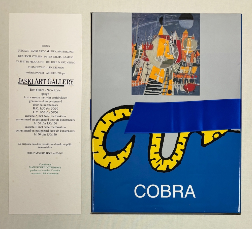 Luxe cassette box uitgegeven door Jaski Art Gallery Amsterdam met zeefdrukken van Guillaume Corneille, Eugene Brands en een manuscript editie door Christian Dotremont. De luxe casette bevat; - 2x Guillaume Corneille - Zeefdruk gesigneerd & genummerd. - 2x Eugene Brands - Zeefdruk gesigneerd & genummerd. - 1x Manuscript editie Christian Dotremont (1e publicatie geschreven in atelier Corneille) Voor verdere info over de oplage zie foto colofon. Verzekerde verzending of ophaling mogelijk.