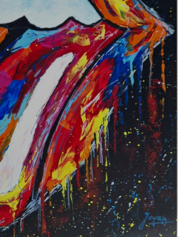 Thick relief layers of paint applied with a palette knife and in this painting from the ''Rock & Roll forever'' series radiate great power, attracting the viewer to look for what is hidden. The dynamism, expression and freedom of the artist's artistic expression are clearly visible. Original abstract expressionist composition by Dutch professional contemporary artist Jovan Srijemac (1962). Paint is expressive and applied to canvas with great dynamics. Lacquered and with certificate of authenticity and ready to hang. Jovan Srijemac (1962) is a professional artist based in the Netherlands who has exhibited his paintings both nationally and internationally. As a professional artist since the 1980s, his artistic expression has taken various forms over the years. He describes his style as an unconscious, often chaotic and explosive application of paint to the canvas, hidden in unplanned figures, objects and abstract compositions. Jovan's vibrant compositions are often created with a palette knife, but his Pop/Street Art style works also use spray paint, acrylic markers or pastels. His work is sold all over the world to private individuals, art collectors and companies.