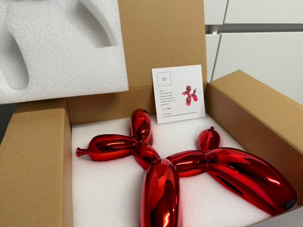 Resin sculpture after Jeff Koons, published by Éditions Studio. Limited edition of 999 copies, of which this number is 167. The sculpture is delivered in its original packaging and is accompanied by the original certificate. The sculpture is in good to excellent condition. Beautiful color as a Christmas gift! Sale of private collection.