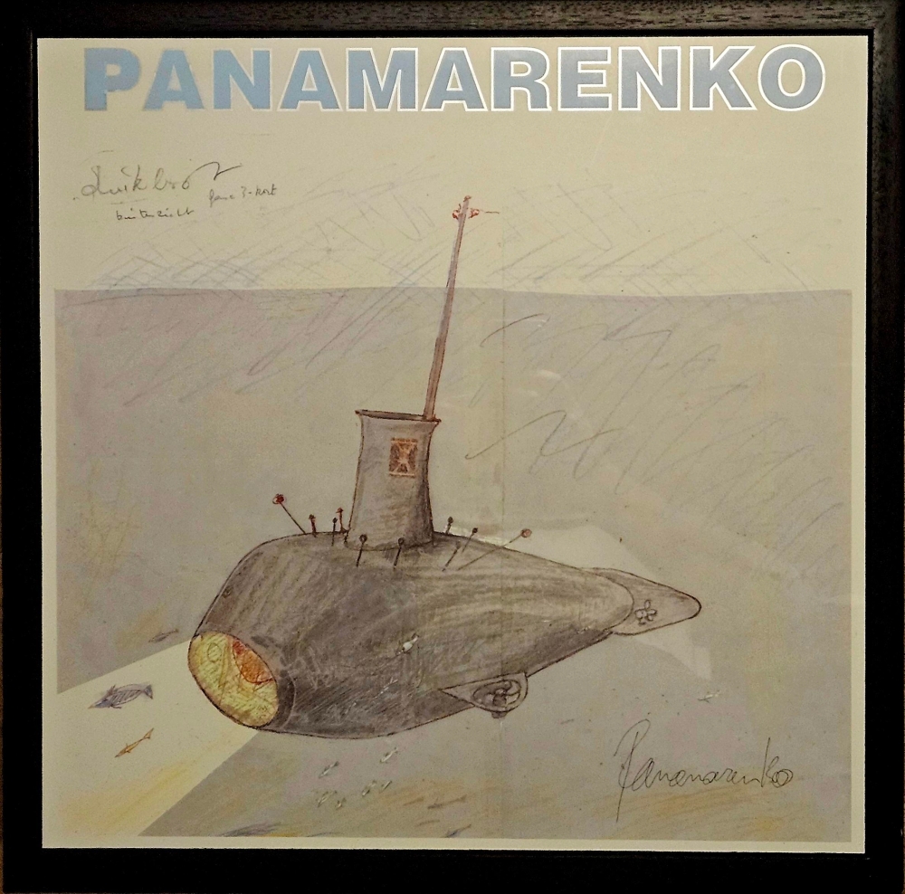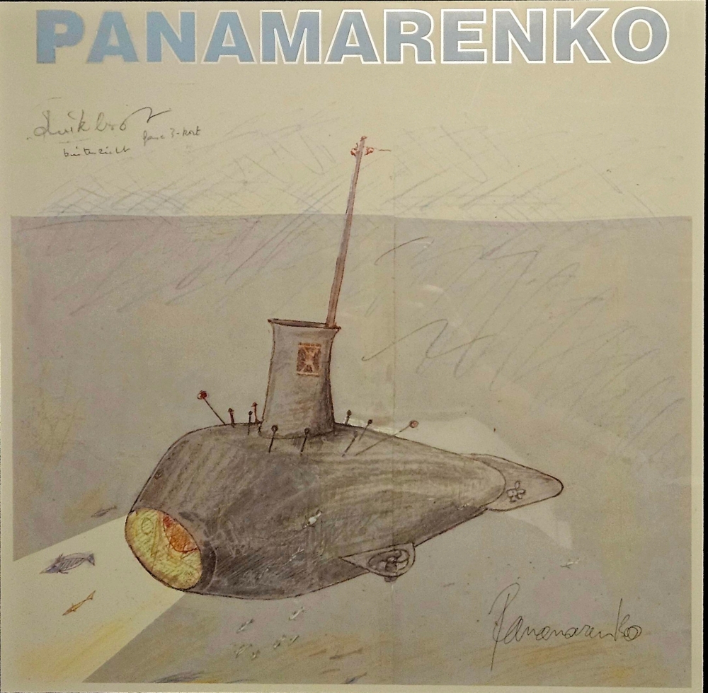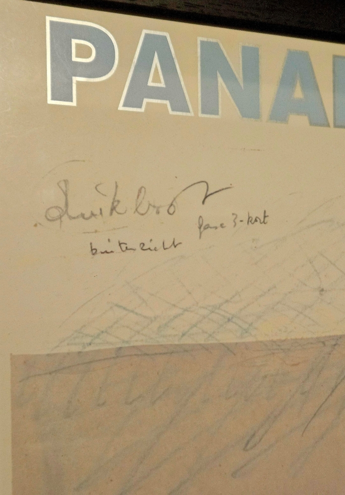 Panamarenko - Tahama Heel mooie offset (zilverdruk, zie letters) met de hand gesigneerd door Panamarenko (rechtsonder) Ingelijst in een zwarte houten kader, kan zo aan de muur. 2025 wordt het Panamarenkojaar, zie ook Panamarenko85