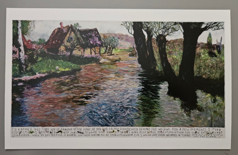 Mooie offset van Rinus Van De Velde op karton XL Artcard 30 x 18 cm. Rinus Van De Velde is een totaalkunstenaar, die naast reusachtige tekeningen ook andere media inzet, zoals sculpturen, film en keramiek. Via deze beelden creëert hij voortdurend een spanning tussen fictie en realiteit.