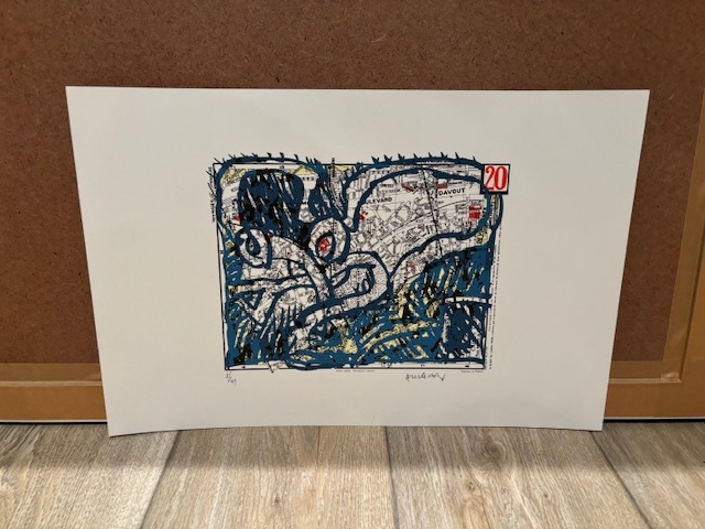Prachtig kunstwerk van de grote Cobra kunstenaar Pierre Alechinsky. Het werk is genaamd Paris - 20e Arrondissement en is slechts op 99 exemplaren uitgebracht in 1983. Dit is nummer 75, in potlood genummerd en gesigneerd door de kunstenaar zelf. Zeer mooi!