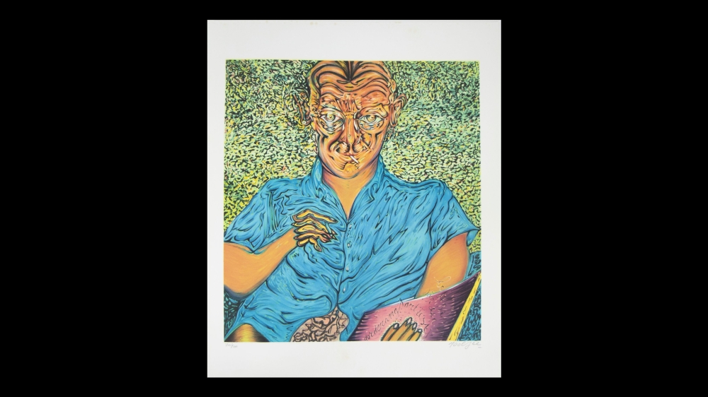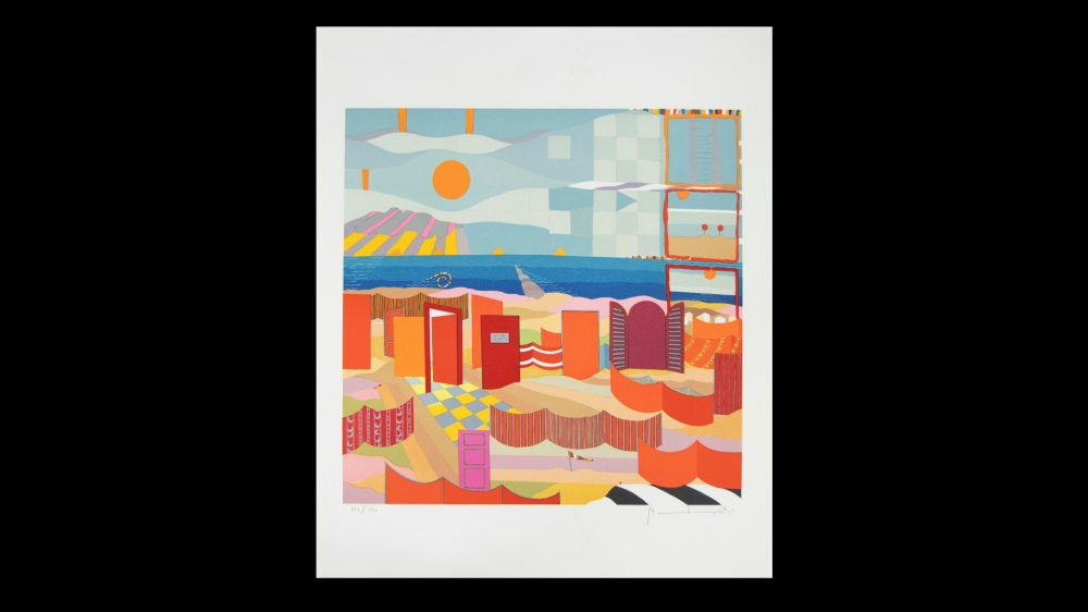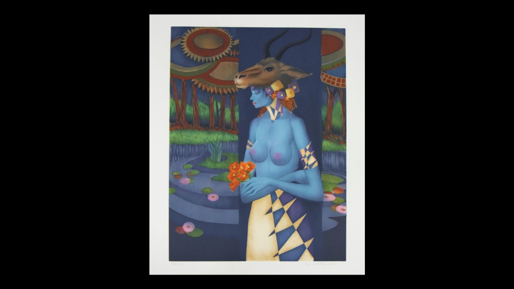 Met werk van Pjeroor Roobjee, Jef Van Tuerenhout, Jef Van Grieken en Adi Steurbaut. 4 lithographs, Jef Van grieken 'Eenzaam', Pjeroo Roobjee 'Bekertenisse ...', Adi Steurbaut 'Verboden te zwemmen' and Jef Van Tuerenhout 'Antilope'