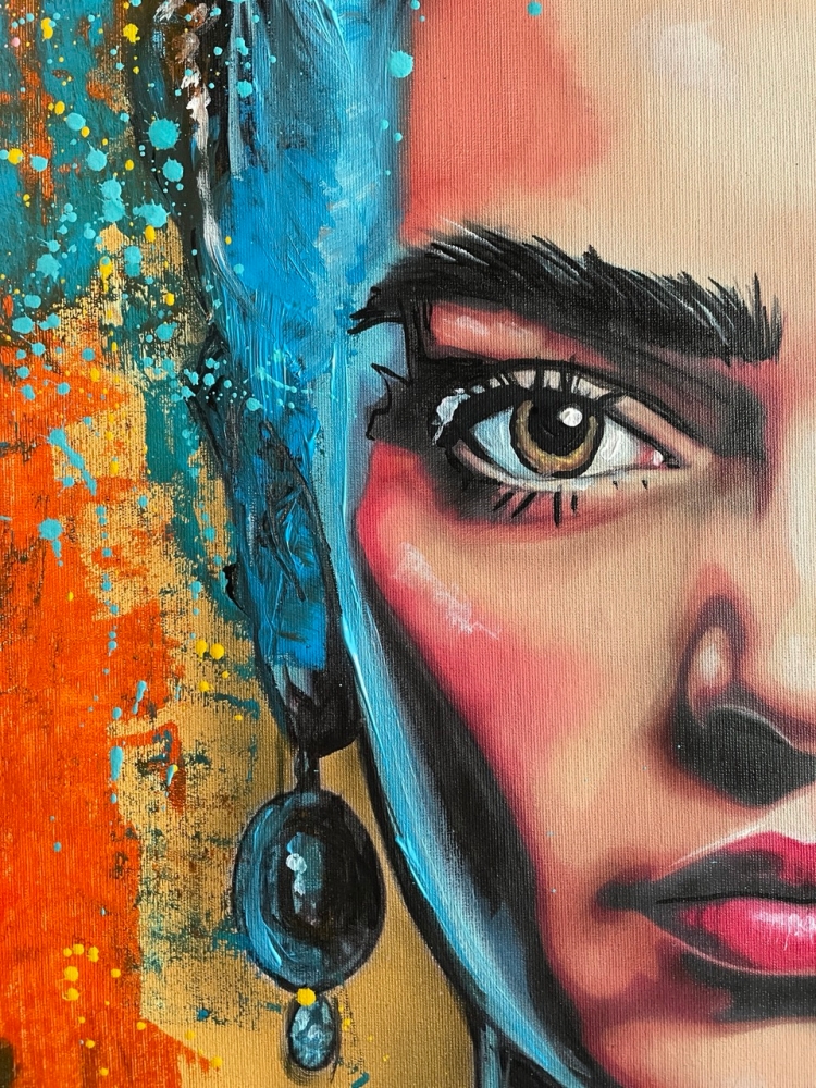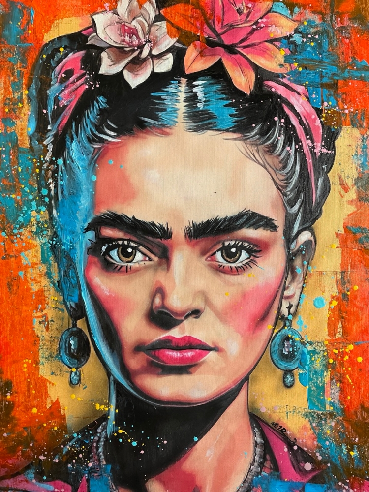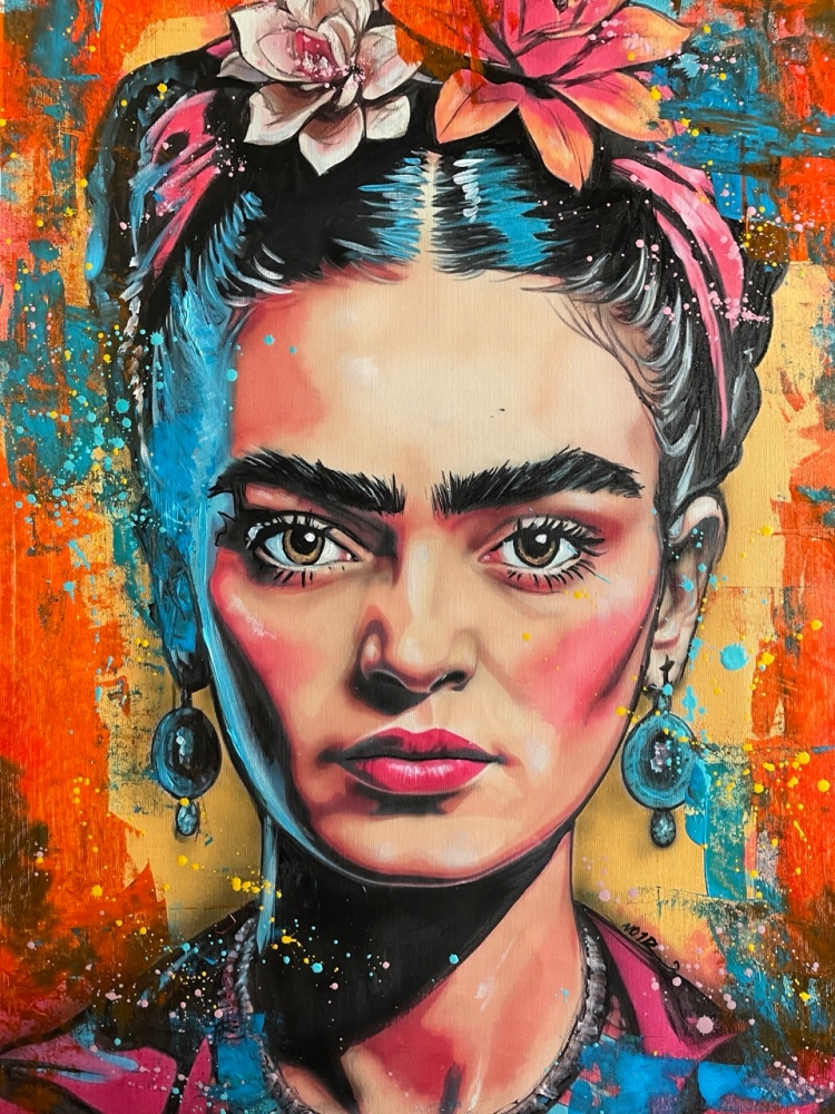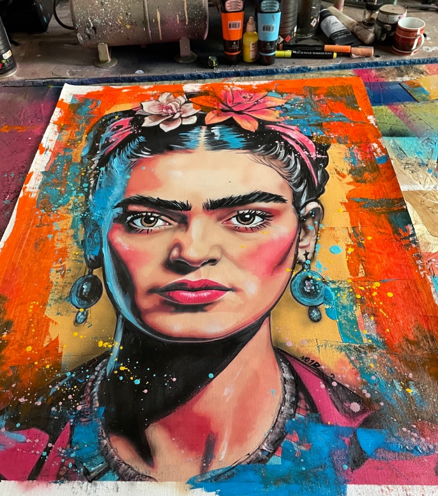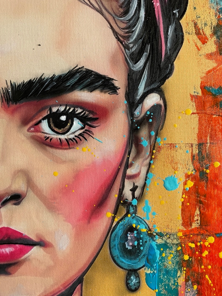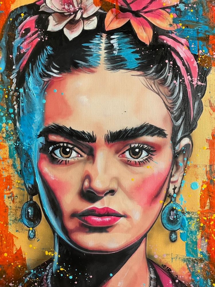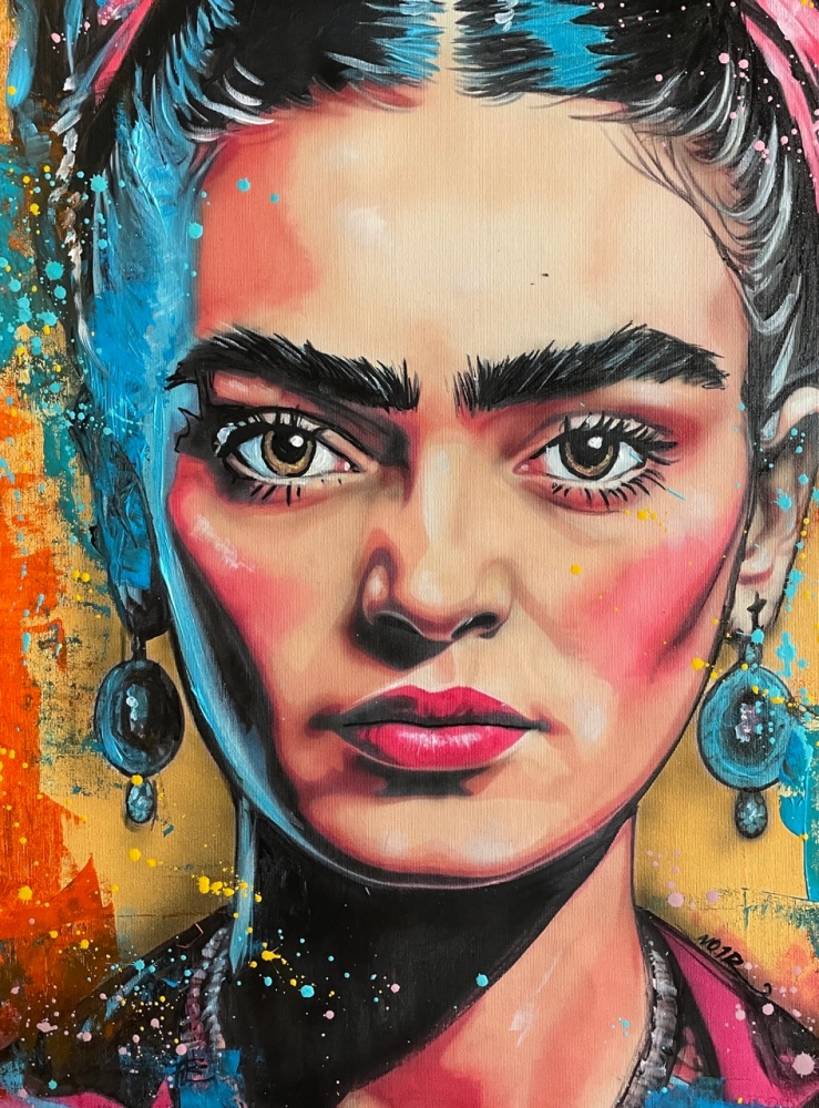 COLLECTOR'S ITEM! "FRIDA KAHLO" Introducing an exceptional interpretation of this Noir's piece, this artwork is a mixed media on canvas titled "FRIDA KAHLO" This exclusive edition highlights the artist's passion In every stroke, Noir's work reflects an unwavering commitment to the art form. -This is a unique work of art, hand-signed and with a certificate of authenticity, delivered to your door. -Sent rolled in a tube. -This is a Mixed Media Artwork on canvas, so you should expect some flaws, imperfections splatters, small cracks or wrinkles can also happen, and when it does, it's part of the artwork. This is just the nature of the spray on canvas. -Sent rolled in a tube. -Colors may shift due light conditions at the moment of the photo. *do not leave it in the tube Noir, a passionate artist, discovered her deep-seated love for Urban art and Illustration from a tender age. Over the years, Noir's artistic journey has unfurled, expanding the skills into various creative realms, including concept art and digital painting, music, 3d sculpt and traditional painting.