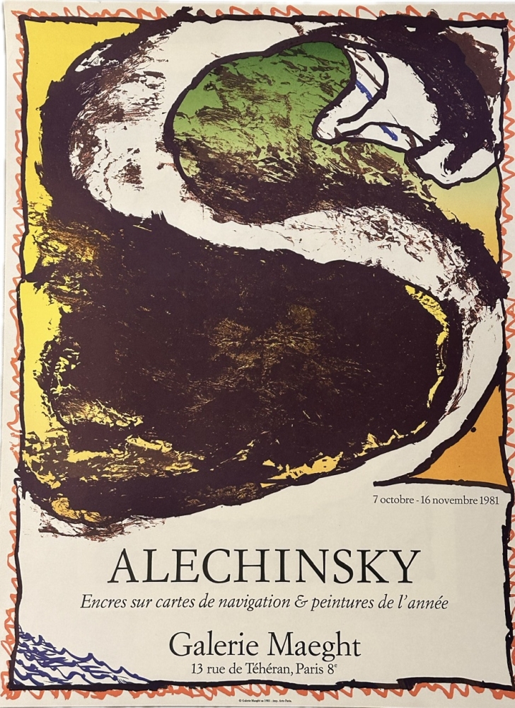 Prachtige affichelitho uit 1981 Alechinsky combineerde meerdere technieken in zijn werk. Zo combineerde hij aquarel en schetsen. Zijn werk werd in de tweede helft van de jaren 50 trouwens meer bewogen