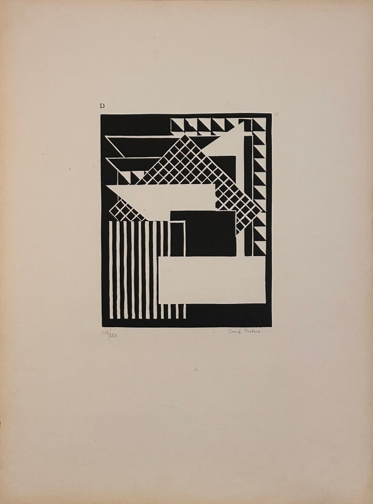Zeer zeldzame linosnede. Met de hand gesigneerd en genummerd op 250 ex. Josephus Henricus (Jozef) Peeters (Antwerpen, 24 juli 1895 10 september 1960) was een Belgisch graficus en schilder. Hij wordt beschouwd als een van de eerste Belgische abstracte kunstenaars. Hij was zoon van Henricus Camillus Peeters en Paulina Albertina Henrica Beruck. Zelf trouwde hij met Pelagia Pruym.