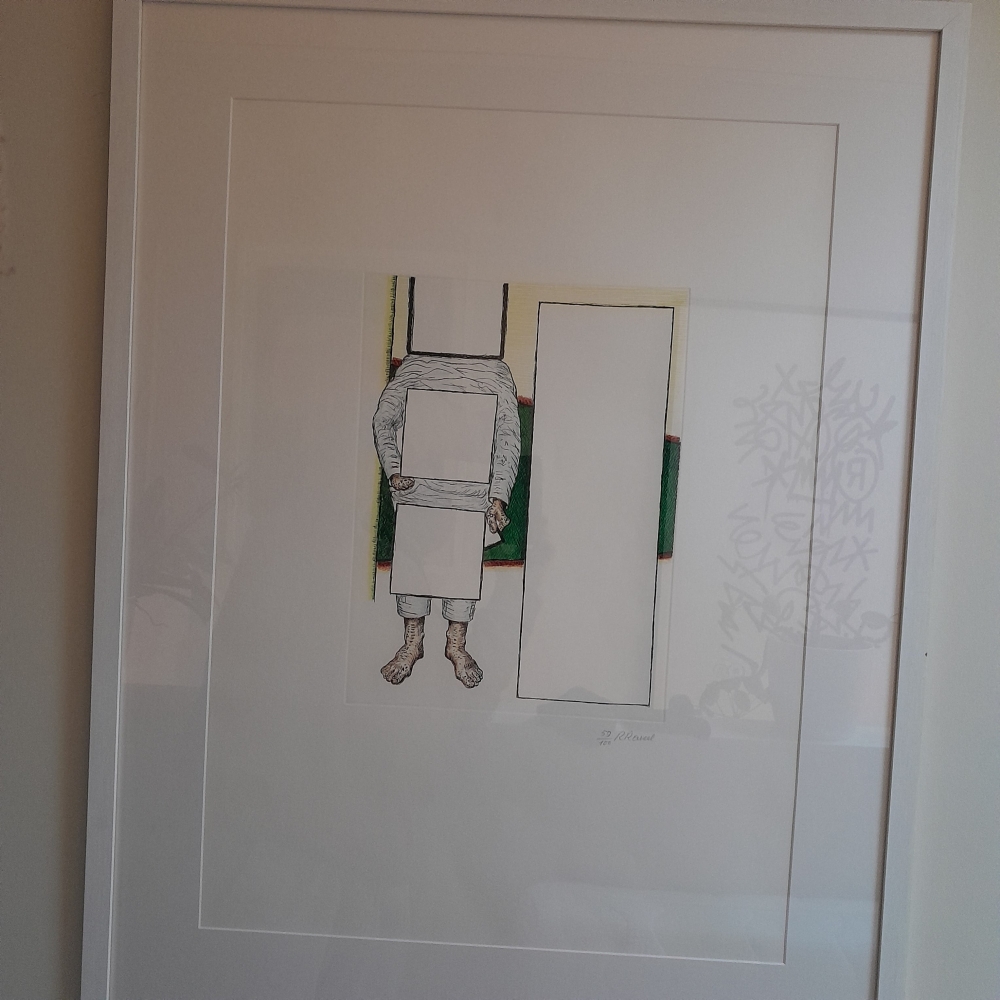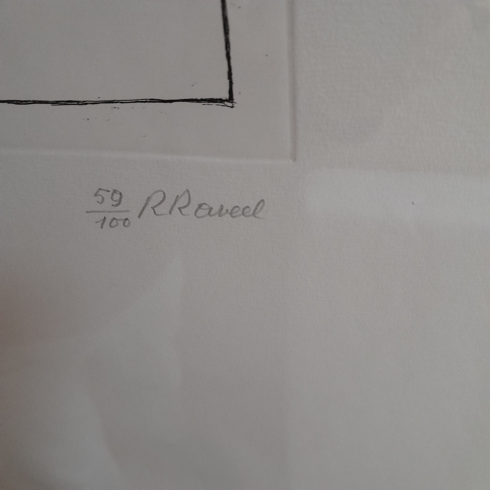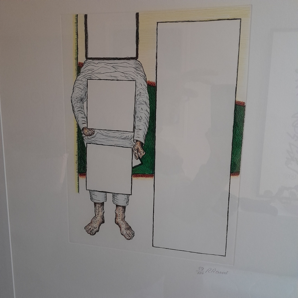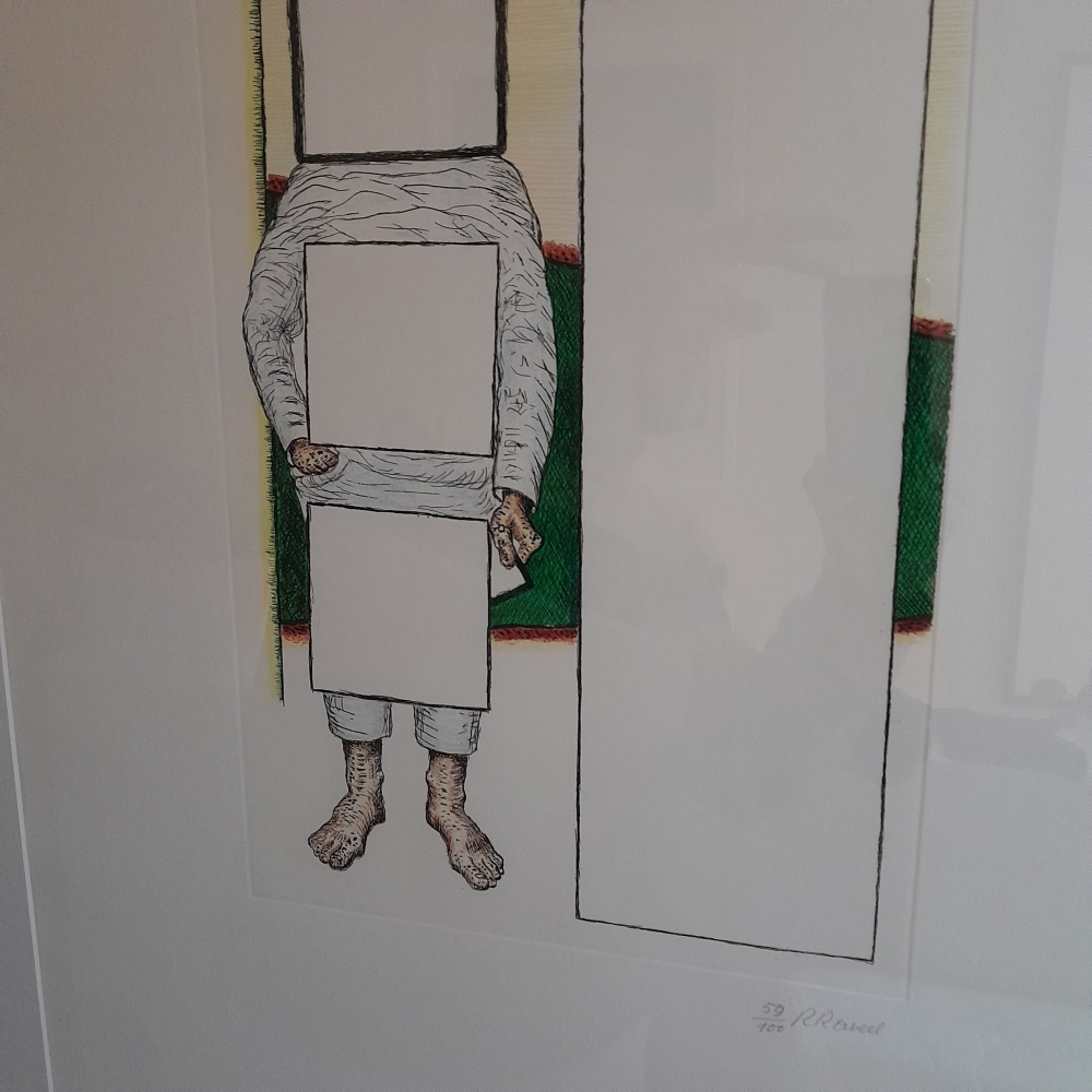 Kleurenets genummerd en gesigneerd door Roger Raveel. Getiteld 'Een mens ten voeten uit'. Perfecte staat, professioneel ingekaderd. Kan afgehaald of geleverd worden. Dit werk staat vermeld in zijn oeuvre nummer 261.