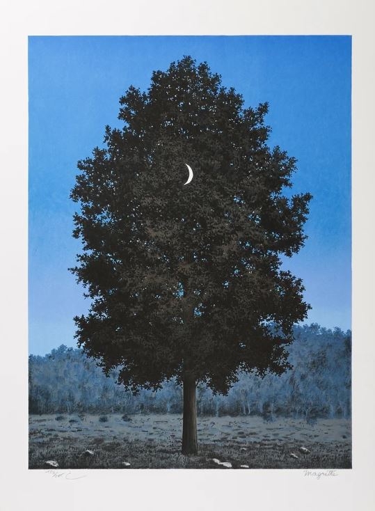 Color lithograph after the work of the same name by René MAGRITTE. Signed with name stamp and signature of Charly Herscovici Numbered on 275 copies and with blind stamp "Succesion Magritte" and blind stamp "ADAGP Paris 2011" Top dimensions (hxw): 60 x 45 cm Frame dimensions: 72 x 58.5 cm Published in Paris in 2011 with the approval and under the control of the ADAGP Paris which manages the Magritte estate and with the signature of its representative Charly Herscovici Proof of edition is printed on the back of the lithograph and visible in the new professional framing.