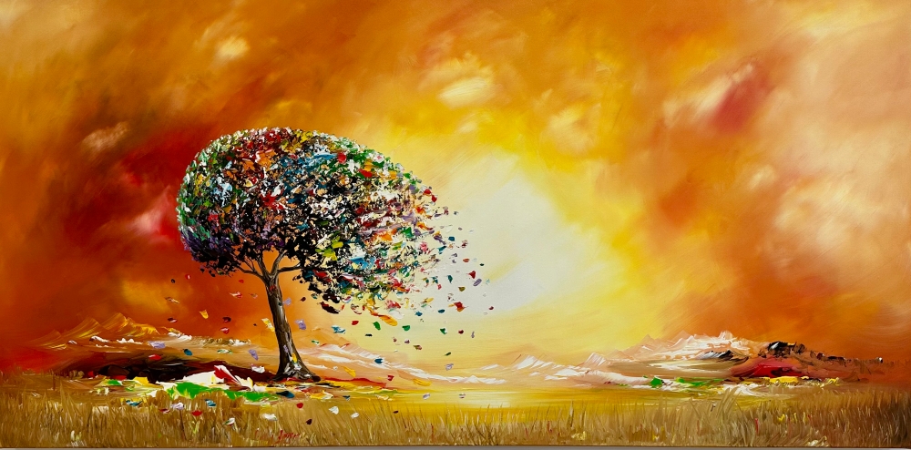 From my studio New Unique Original painting , I am a Dutch artist with more than 30 years of experience in painting. I mainly use acrylics and oils on canvas and my paintings always come with a certificate of authenticity, they also have a layer of varnish. I paint mainly abstract style, architecture painting, nature painting in my own, unique style. In my artistic expression I try to create an alternate reality. I strive to change the person's inner world by adding vibrant colors to their lives and creating a positive atmosphere in their environment. Dimensions: 70x140cm3D