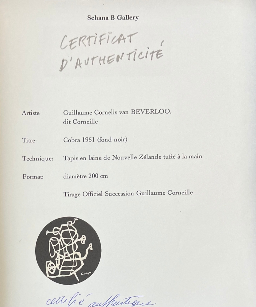 Artist's rug delivered with a certificate of authenticity signed by the painter's wife. New condition - Diameter 200 cm. (The dimensions may vary from one rug to another due to its handmade manufacture) Hand-tufted rug 100% New Zealand Wool Limited Edition