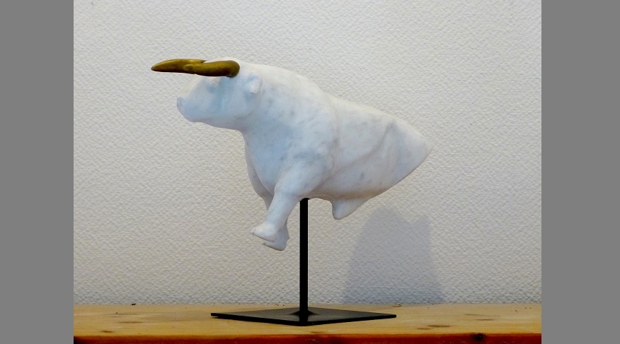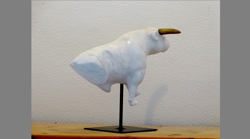 Statuette taillée directement dans un bloc de Marbre de Carrare (Italie). Sculptée manuellement dans mon atelier à Mougins (France). Pièce unique neuve. Signature (monogramme) gravée sur le ventre de l'animal. Socle en fer noir (12/12/12 cm). Certificat d'authenticité signé par l'artiste avec photo de l'oeuvre.