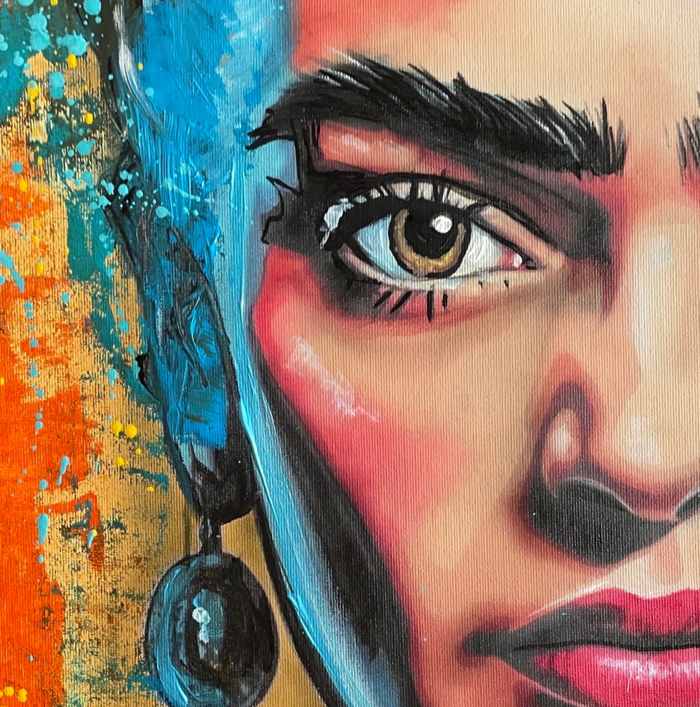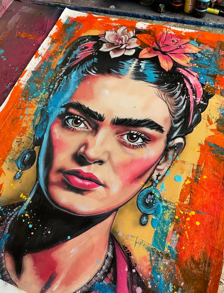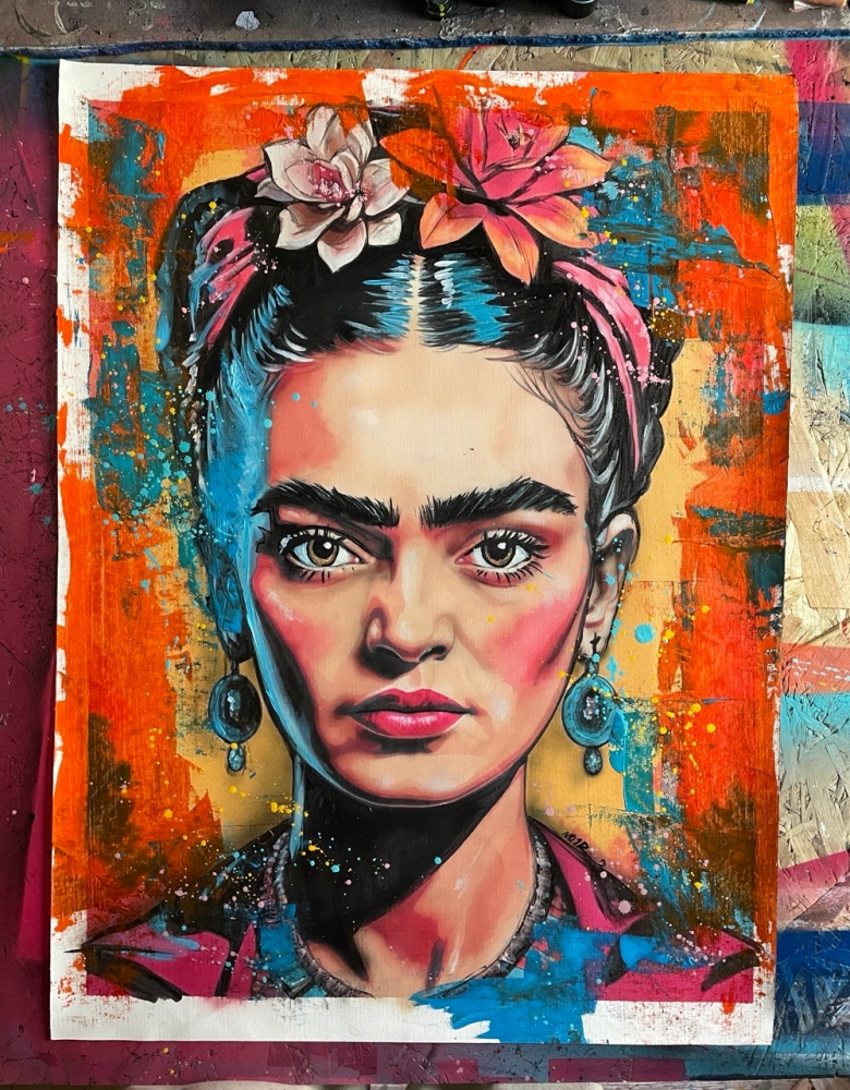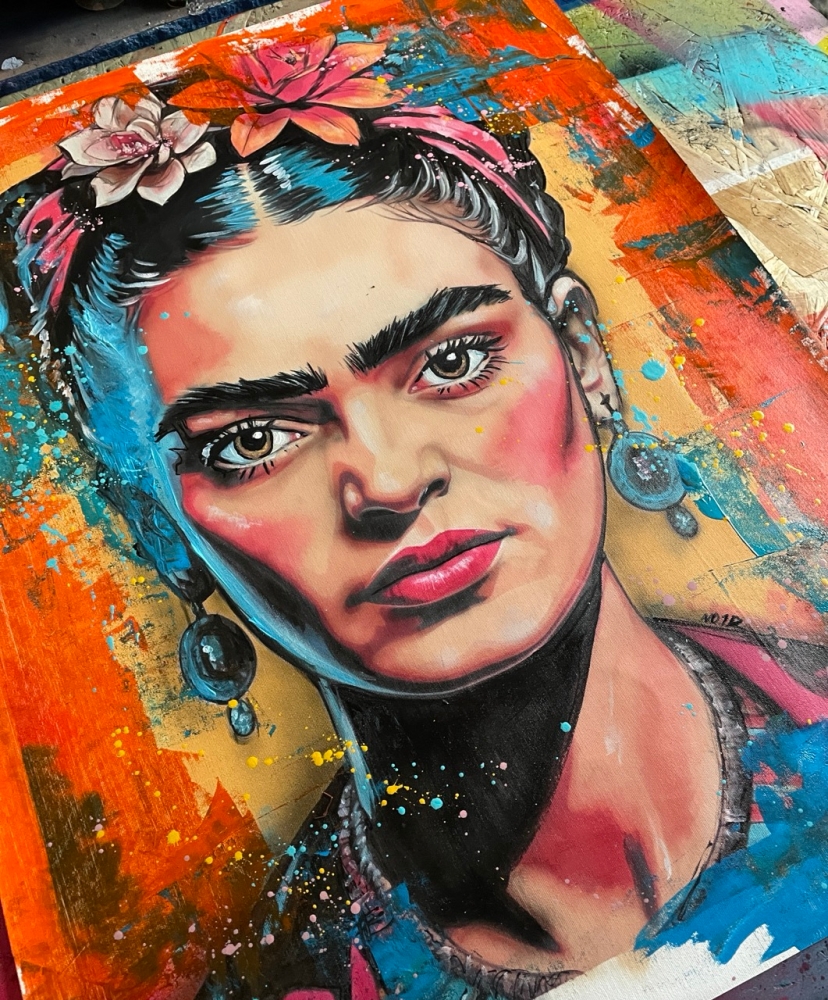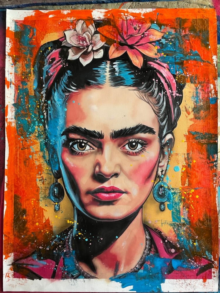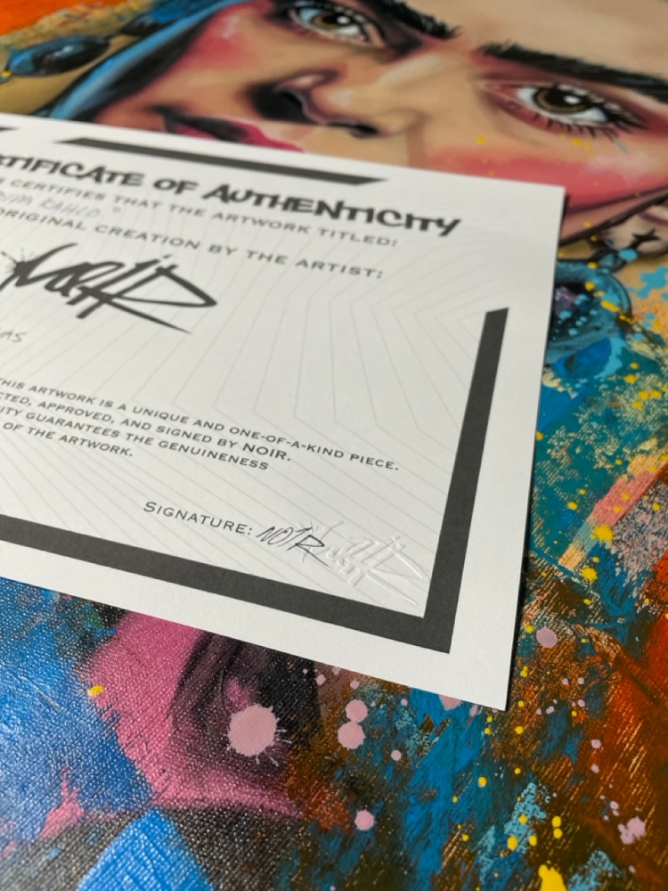 COLLECTOR'S ITEM! "FRIDA KAHLO" Introducing an exceptional interpretation of this Noir's piece, this artwork is a mixed media on canvas titled "FRIDA KAHLO" This exclusive edition highlights the artist's passion In every stroke, Noir's work reflects an unwavering commitment to the art form. -This is a unique work of art, hand-signed and with a certificate of authenticity, delivered to your door. -Sent rolled in a tube. -This is a Mixed Media Artwork on canvas, so you should expect some flaws, imperfections splatters, small cracks or wrinkles can also happen, and when it does, it's part of the artwork. This is just the nature of the spray on canvas. -Sent rolled in a tube. -Colors may shift due light conditions at the moment of the photo. *do not leave it in the tube Noir, a passionate artist, discovered her deep-seated love for Urban art and Illustration from a tender age. Over the years, Noir's artistic journey has unfurled, expanding the skills into various creative realms, including concept art and digital painting, music, 3d sculpt and traditional painting.