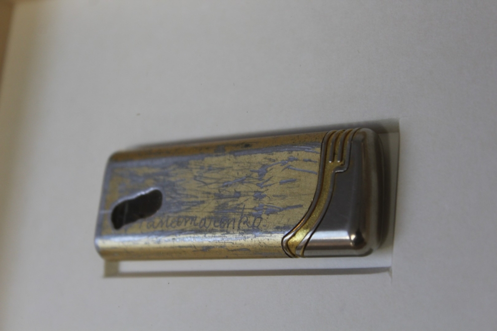 Aansteker gebruikt door Panamarenko, inclusief gegraveerde signatuur. Origineel verzamel-item, afkomstig uit belangrijke privé collectie. Geleverd met certificaat van authenticiteit Ronny Van de Velde.