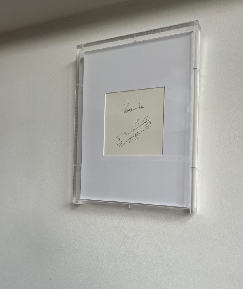 Originele tekening van de ravens matrix in stift in plexibox. Raven's variable matrix, 2000. Ik wilde eerst weten hoe dat mechanisme precies werkte. Een zeemeeuw bijvoorbeeld, dat is eigenlijk gewoon een driehoekig zeil, zoals een deltavlieger, met hooguit flapperende uiteinden...' - Panamarenko Dit eenmansvliegtuig doet denken aan de broze insectenvliegmachines van Panamarenko uit de jaren zeventig. De constructie is echter niet gebaseerd op het vleugelmechanisme van insecten, maar op de klappertechniek van vogels. De constructie bestaat uit een lange stalen buis met aan de voorzijde een zitplaats voor de piloot en aan de achterzijde een staartroer. De vleugels hebben een aluminium frame en zijn bedekt met transparant macrolon. De vleugeltips zijn gemaakt van zwart schuimrubber, wat de weerstand biedt die nodig is om de vleugels bij een snelheid van 50 km/u in een optimale positie te houden.