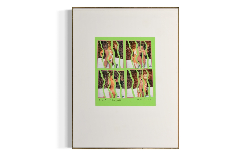 Original collage by Belgian surrealist Marcel Mariën. The work is entitled, dated and signed by the artist. In framework. 40x30 cm. Insured shipping as well as picking up both possible.