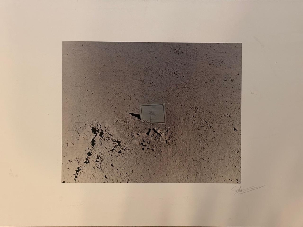Gesigneerde fotoprint van het eerste, en tot op heden, enige kunstobject op de maan: fallen astronaut handgesigneerd door Paul Van Hoeydonck Enkele vlekjes op het witte gedeelte (zie foto’s) het beeld zelf is in perfecte staat. Mits inlijsten niet te zien Tijdens de maanmissie in 1971 plaatste de crew van Apollo 15 een aluminium beeldje van een gevallen ruimtevaarder naast een gedenkteken. Het figuurtje, gemaakt door Paul Van Hoeydonck, werd daarbij het eerste kunstwerk op de maan