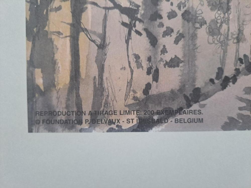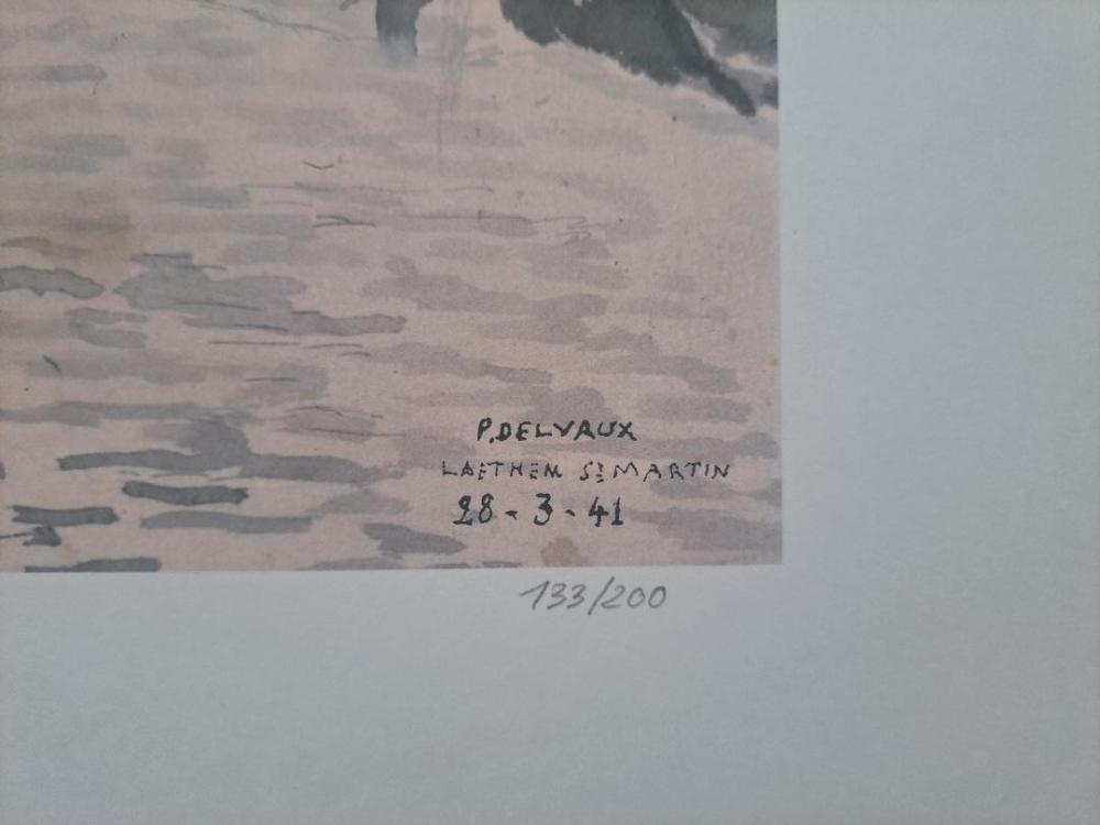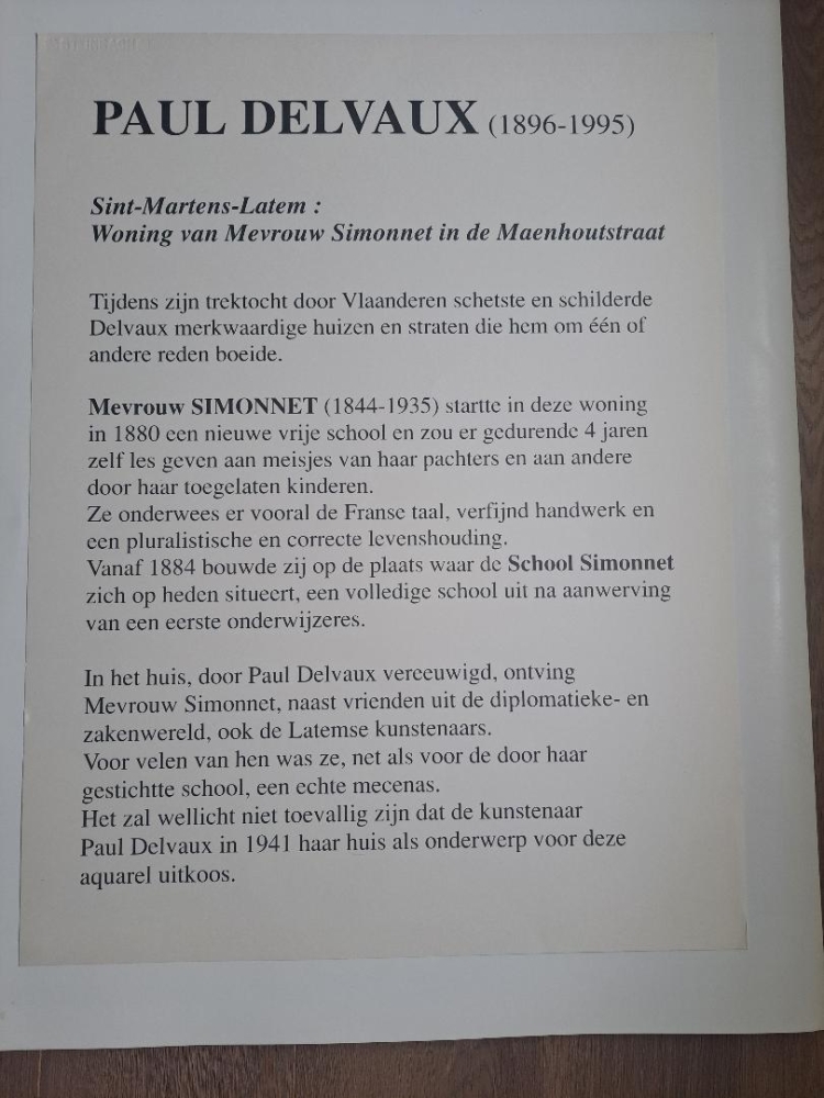 Paul Delvaux-Sint-Martens-Latem: home of Mrs. Simonnet in the Maenhoutstraat Limited edition by the Foundation Paul Delvaux at 200 ex. On Steinbach paper to a watercolor from 1941 Rare is that the accompanying text, printed on the same paper, has also been added