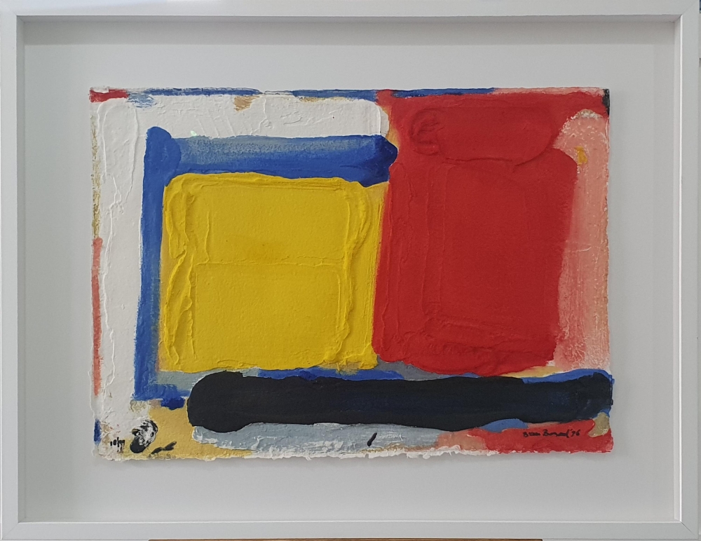 Very beautiful and colorful aquagravure by Bram Bogart. Edition from 1999 and limited to only 99 copies of which this is number 18. The piece measures +/- 55 x 75 cm. The work is beautifully floating framed with 70% UV-resistant glass and a beautiful heavy white frame.