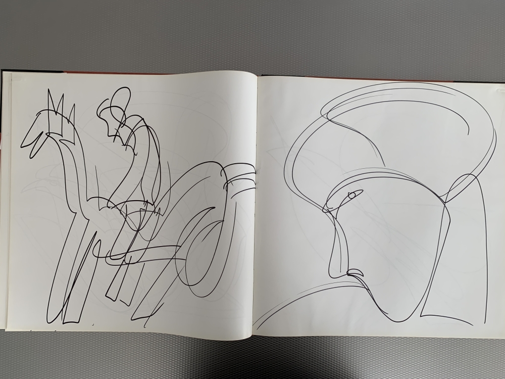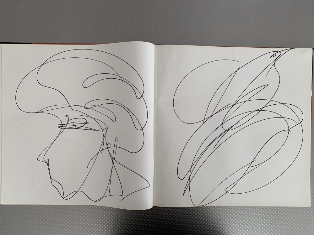 Het boek bevat meer dan 160 tekeningen en schetsen gemaakt in de periode 1983-1984. De tekeningen zijn gemaakt met zwarte stift op glanzend papier. De afmetingen bedragen 50 x 50 x 5cm. Dit is een uniek stuk. Bij aankoop wordt ook een gratis oeuvrecatalogus van de kunstenares aangeboden.