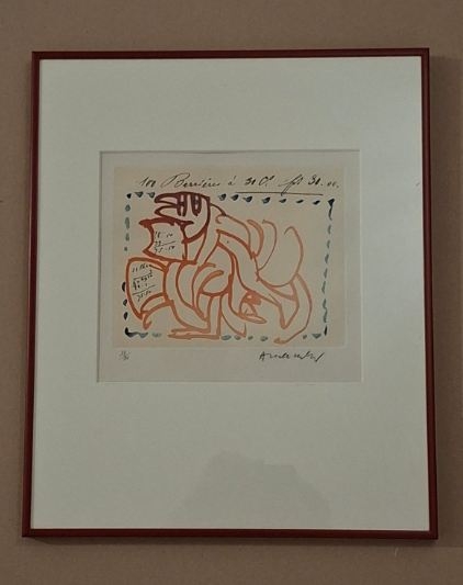 Etching on Moulin de Larroque paper Signed and numbered in pencil Printed by Robert and Lydie Dutrou RLD, Paris Framed in a matching metal frame Literature: Alechinsky, Printed matter by Michel Butor and Michel Sicard, pp. 68–72