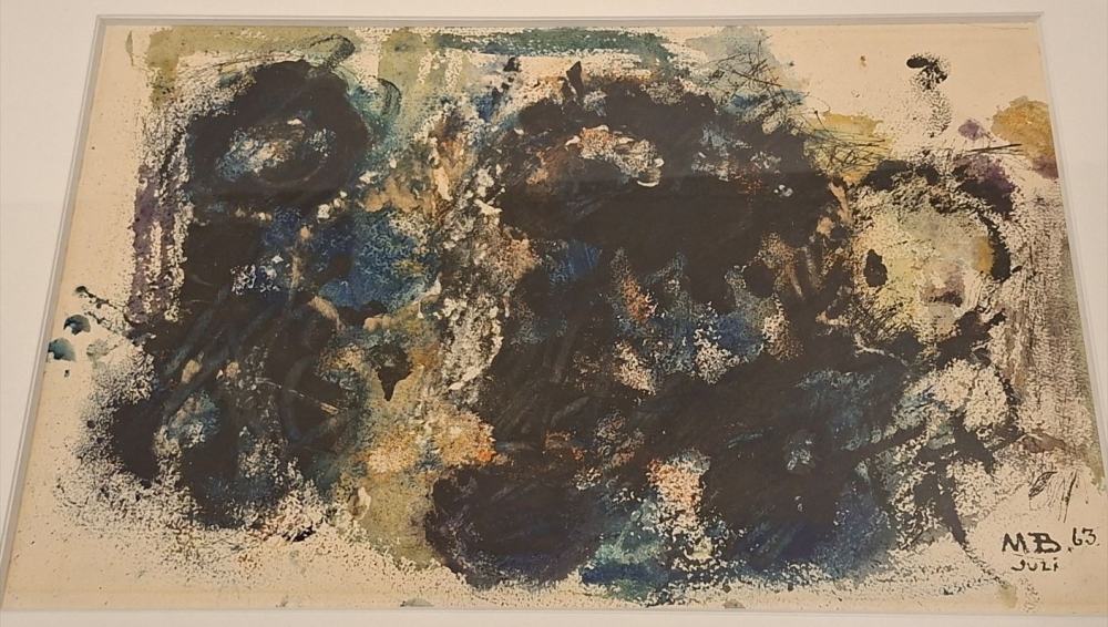 original colorful work on paper by Mogens Balle in his typical style. signed at the bottom right with monogram MB and July 63 professionally framed in a metal frame. some reflection from the glass. Mogens Balle (Copenhagen, 1921 - Copenhagen, 1988) was a Danish painter and writer and affiliated with the Cobra movement. Balle first studied to become an architect, but stopped studying to focus on the visual arts. In 1947 he co-founded the artists' association Spiralen, where he met artists such as Asger Jorn and Wilhelm Freddie. After first focusing on Naturalism, from 1945 he switched to abstract painting, in which fantasy figures were shown. After his Cobra period, his work became increasingly abstract.