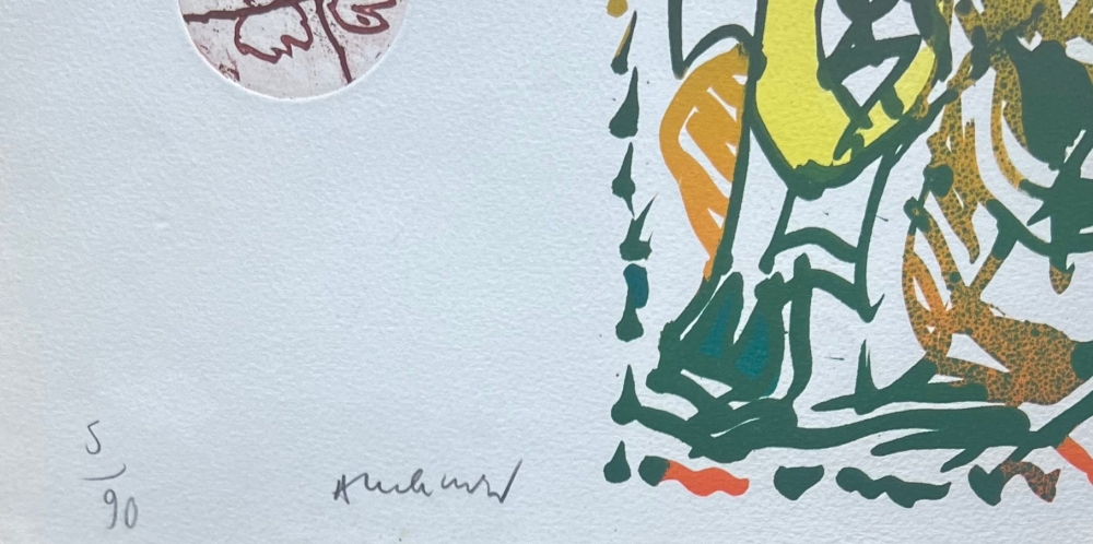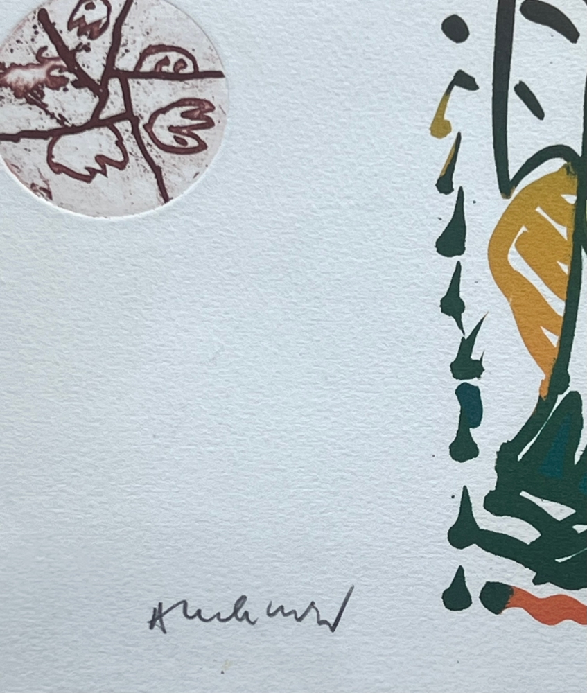 Gemengde techniek: ets, aquarel en lithografie op Archesonderaan gesigneerd met grafiet, genummerd 5/90Zeer goede algemene staat.