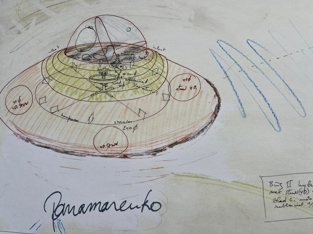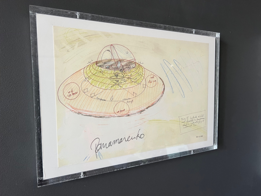 Panamarenko BING II Lithografie offset in plexibox. Gesigneerd in zilverdruk Machinaal genummerd Panamarenko (Henri Van Herwegen) (19402019) was een van de belangrijkste Belgische hedendaagse beeldende kunstenaars en ontwierp talrijke imaginaire voertuigen. Editie BING II (voorbereidende studie voor een ruimtevaartuig met dezelfde naam) Gedrukt op Biotop-papier van 160 g en uitgegeven door DSM In goede staat zie foto's Afmetingen: Werk: 37 x 25 cm plexibox: 44 x 31 cm