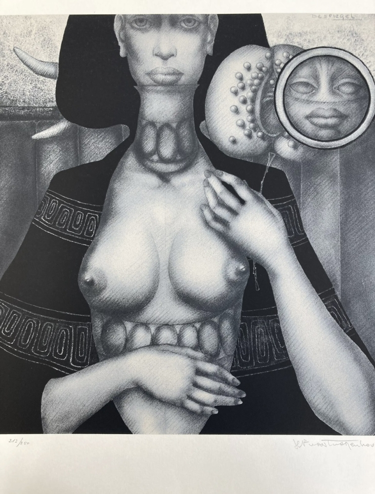 Beautiful framed lithograph by Hef Van Tuerenhout. signed and numbered by hand. Jef van Tuerenhout (Mechelen, May 23, 1926 Wenduine, March 4, 2006) was a Belgian painter, sculptor, ceramist, engraver and jewelry designer. During his career his style evolved from bitter miserabilism, Flemish expressionism to neo-expressionism. Finally, this resulted in a slightly erotic, sensual style on the border between surrealism and magical realism. He is sometimes called Belgium's last surrealist