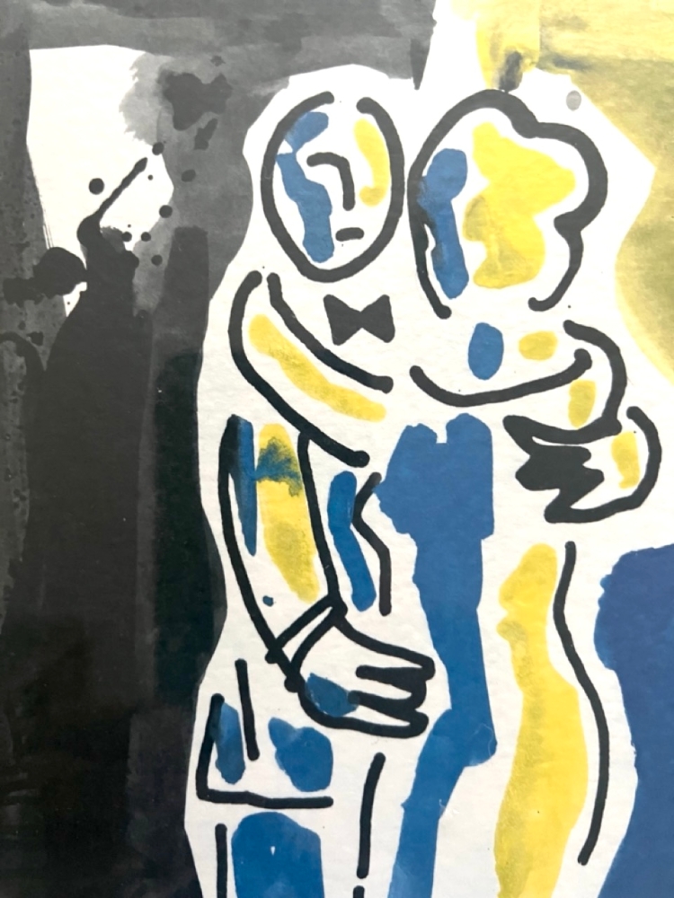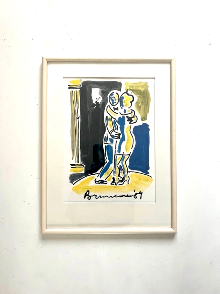 Stylish and instantly recognizable Bruneau. The dancing couple, executed in fresh color areas and dynamic lines, gives the work a lively and modern look. Framed and in excellent condition. An attractive and decorative work of art with a strong emotional appeal. Bruno Bruneau Schnieders (19572025) was an Antwerp painter known for his expressive lines, playful figuration and direct, almost cartoonish style. He continued to work passionately throughout his life, even when his health deteriorated sharply. His oeuvre, characterized by lightness, humor and a strong human warmth, remains very popular within Belgian modern art.