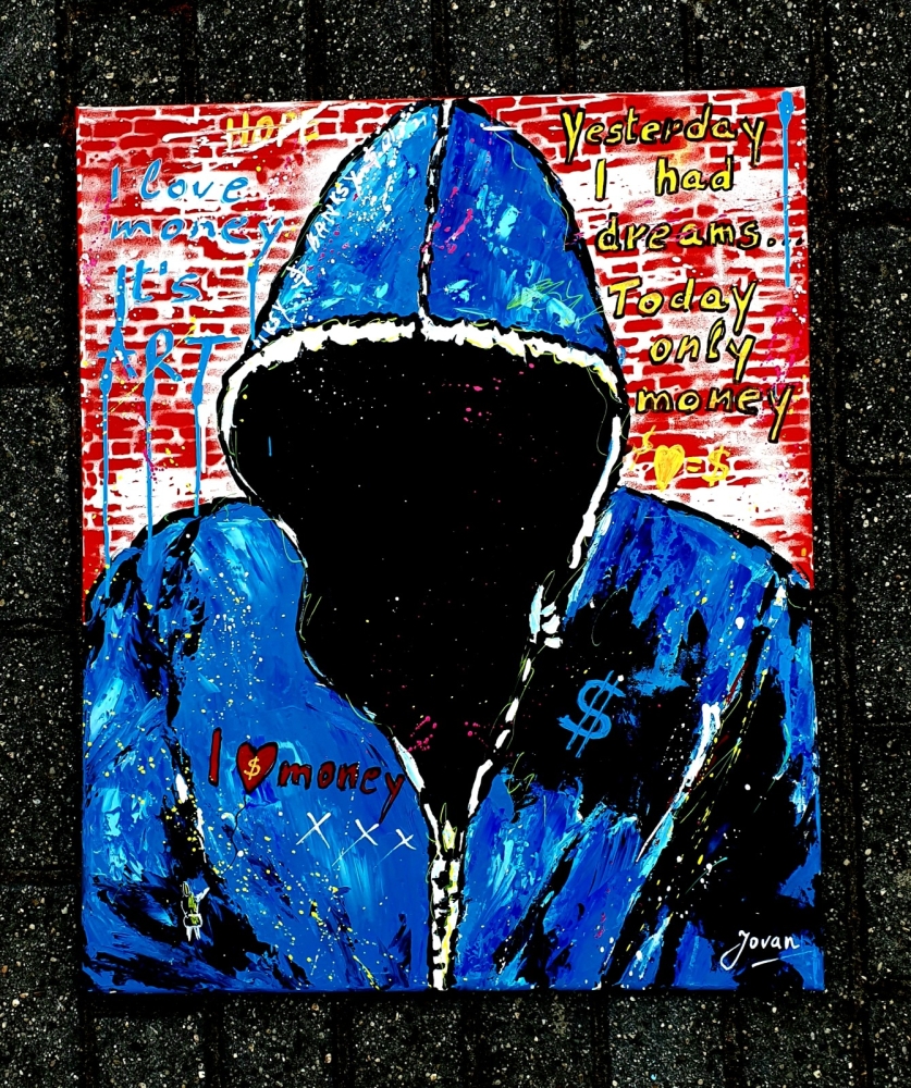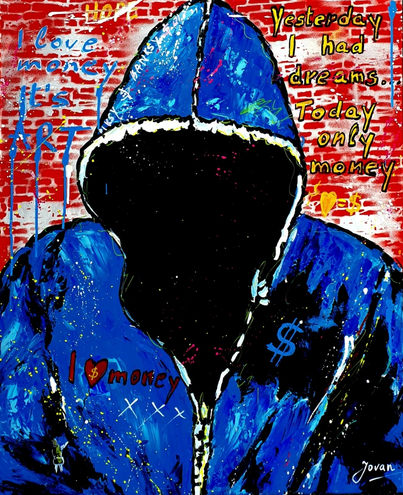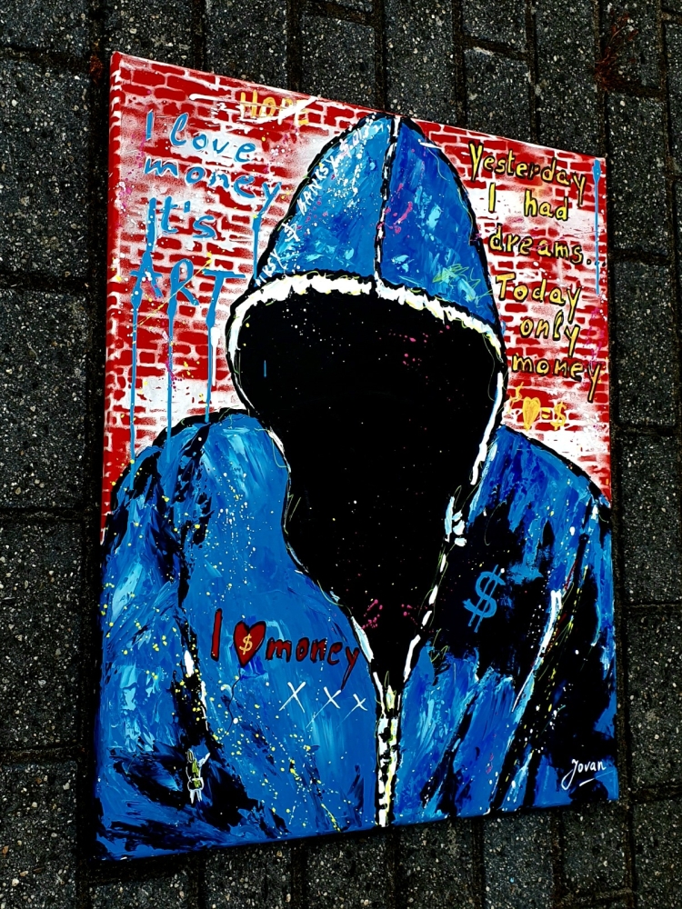 Unique abstract schilderij in Pop / Street Art stijl, by Dutch professional contemporary artist Jovan Srijemac (1962). Work is painted in an expressionistic style, layers of paint, with a pallet knife, and acryl markers.. This work fits well in a modern interior or office space. Work is in excellent condition (new), varnished, and with certificate of authenticity. "The chaos of ideas that have arisen in my head, the inner deprived energy, wants to come out like a volcano and thus become an explosion and a symphony of colors on the canvas, framed with matter, figures, faces or abstract compositie. My work is close to expressionist style, but I like to experiment with pop art and action painting. . Most work is painted with pallet knife. Color has been applied to the canvas with a feeling and emotion that comes deep from my soul. Theme is less important if I am satisfied with the composition and the color. Experimenting in art, with styles, techniques, colors, etc, is very important to me