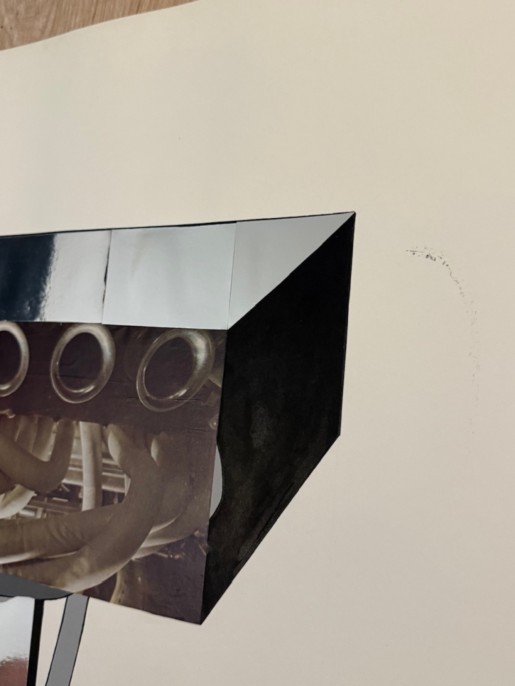 Original work by Paul Van Hoeydonck from 1971. Signed and dated Indian ink, gouache, mirror paper and photo print on Steinback. Paul Van Hoeydonck (19252025) was a Belgian sculptor and artist, internationally known as the only artist to place a work on the moon. His small aluminum sculpture Fallen Astronaut was left by the crew of Apollo 15 in 1971 as a tribute to deceased astronauts. Van Hoeydonck worked within the post-war avant-garde and experimented with abstraction, geometry and new materials, focusing on themes such as space, technology and the future of humanity.