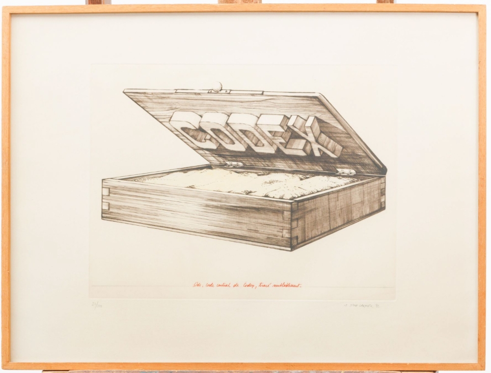 Raised etching by the French artist. Gerhard Titus-Carmel (°1942) is a French artist and poet, known for his intense drawings, graphics and paintings. His work is characterized by repetition, fragile structures and a sober visual language, in which transience, silence and introspection are central. Titus-Carmel moves between abstraction and figuration and often investigates the relationship between body, nature and inner experience.
