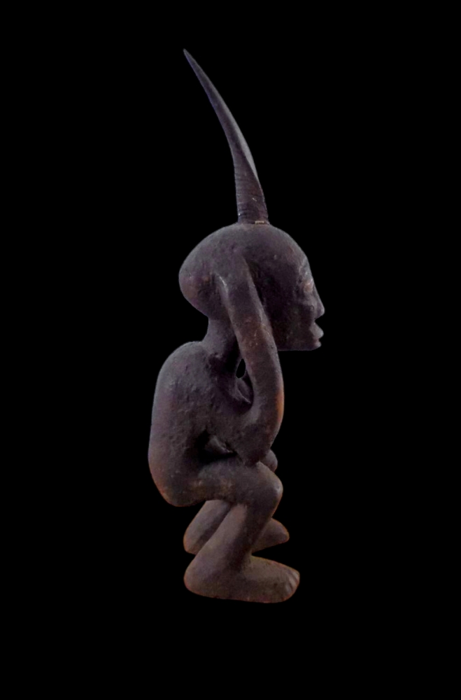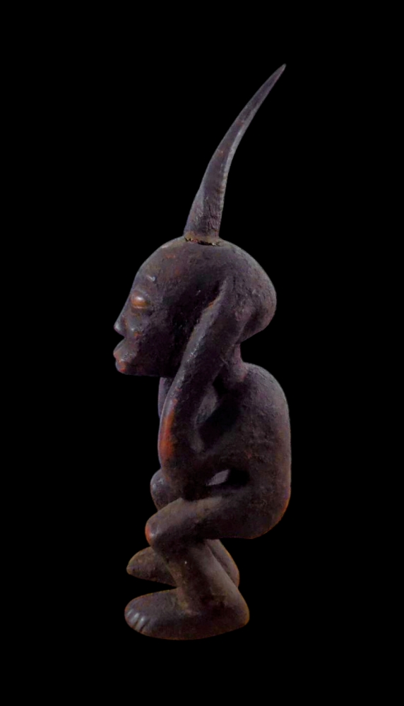 Very Rare,African tribal art, a very old Kongo wooden Nkisi statue from the 19th century! Protective figure fetish with original magic antelope horn is in very good condition, radiates energy! It comes from the private collection of the great Catalan collector Mr. Miquel Jacas (Barcelona)! Height with horner: 63cm A PIECE OF MUSEUM VALUE WITH SIGNS OF THE PASSAGE OF TIME (OVER 150 YEARS). THIS PIECE WAS USED VISIBLY IN A LARGE NUMBER OF TRIBAL Ceremonies and Rituals! It is a very rare piece of history! Estimate:1200-1600eur...