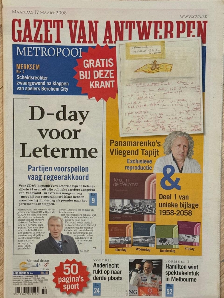 Offered is a very exceptional set of the Flying Carpet edition published by Gazet van Antwerpen in 2008. Including the original newspaper from back then. The work is in perfect condition and printed on both sides (information about the work on the reverse)
