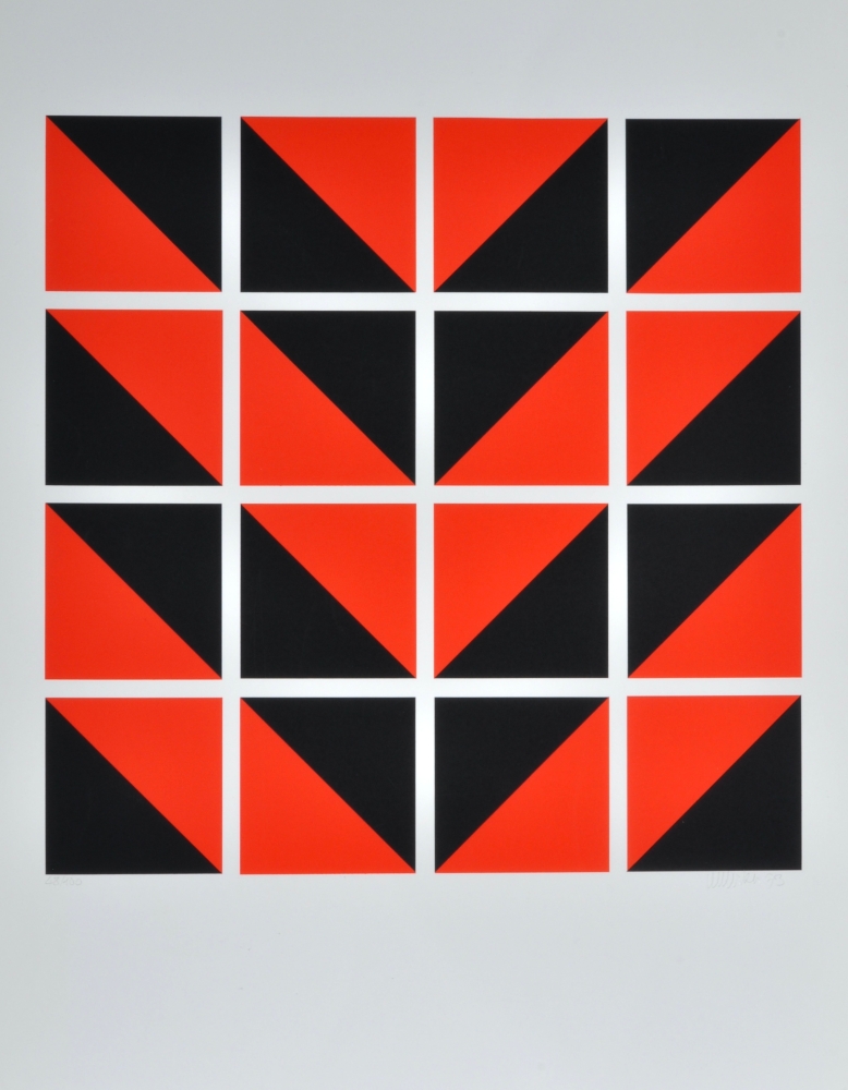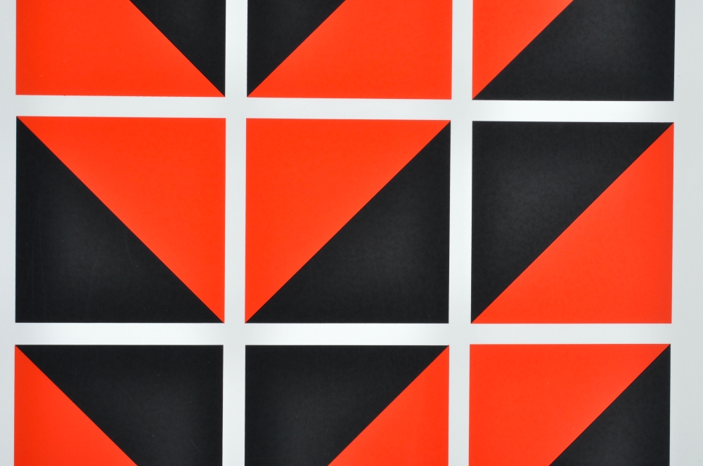 Geometric composition by Mark Verstockt from toperidode - Mark Verstockt (19302014) was a Belgian visual artist who became an important figure in geometric abstraction. His work often starts from strict shapes, lines and mathematical structures, in which he searches for order, rhythm and spatiality. Verstockt worked in both painting and graphics and was known for his sober, intellectual imagery with a strong focus on construction and balance.