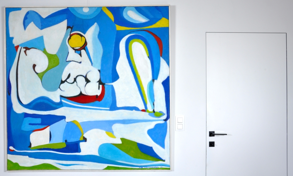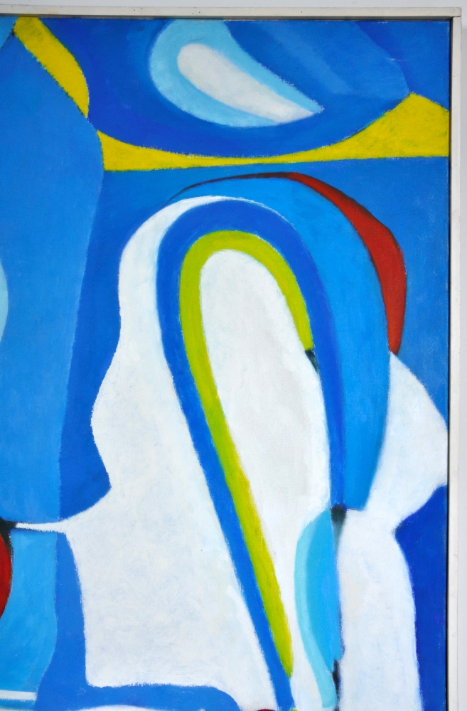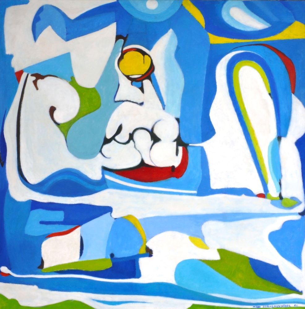 Original large work - framed - gallery price: 2,000 - Mado Schoolmeesters was a Belgian-Dutch artist, trained in Brussels and Antwerp. She worked in Breda from 1960 and made expressive paintings with abstract shapes. Her work is included in collections of private individuals and institutions.