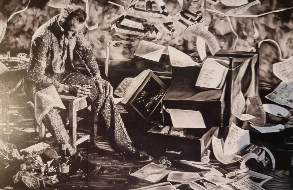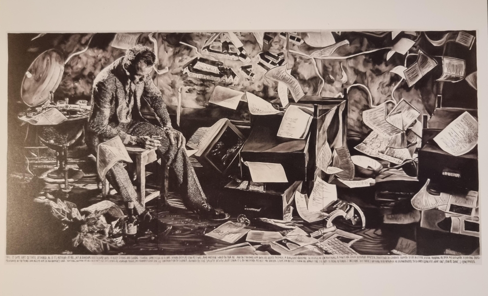Prachtige offset van Rinus Van De Velde op karton. XL Artcard. Niet gesigneerd. Niet genummerd. 30 x 18 cm. Fictie en realiteit, maar ook woorden en beelden vloeien samen in het werk van Rinus Van de Velde (1983). Met tekeningen, sculpturen, installaties, fotos en films bouwt deze Belgische totaalkunstenaar de absurdistische verhalen na die zich in zijn hoofd afspelen