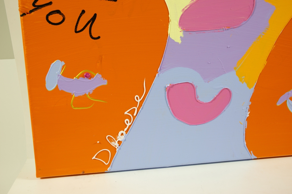 Schilderij in goede staat, heeft aan de letter "Y" van "You" wel een kleine perforatie in het doek. Dit is nauwelijks zichtbaar.