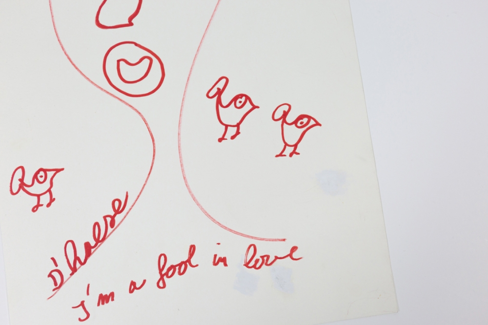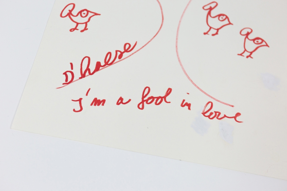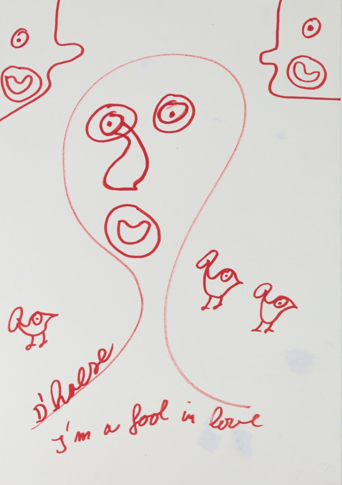 Original drawing on paper by Hannes D'Haese. Signed by hand and with the saying "I'm a fool in love".