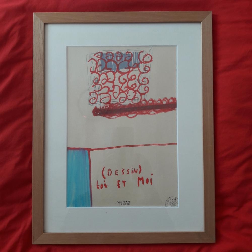 Work dates from 2001 and is signed by hand. Is framed in wooden frame and glass.