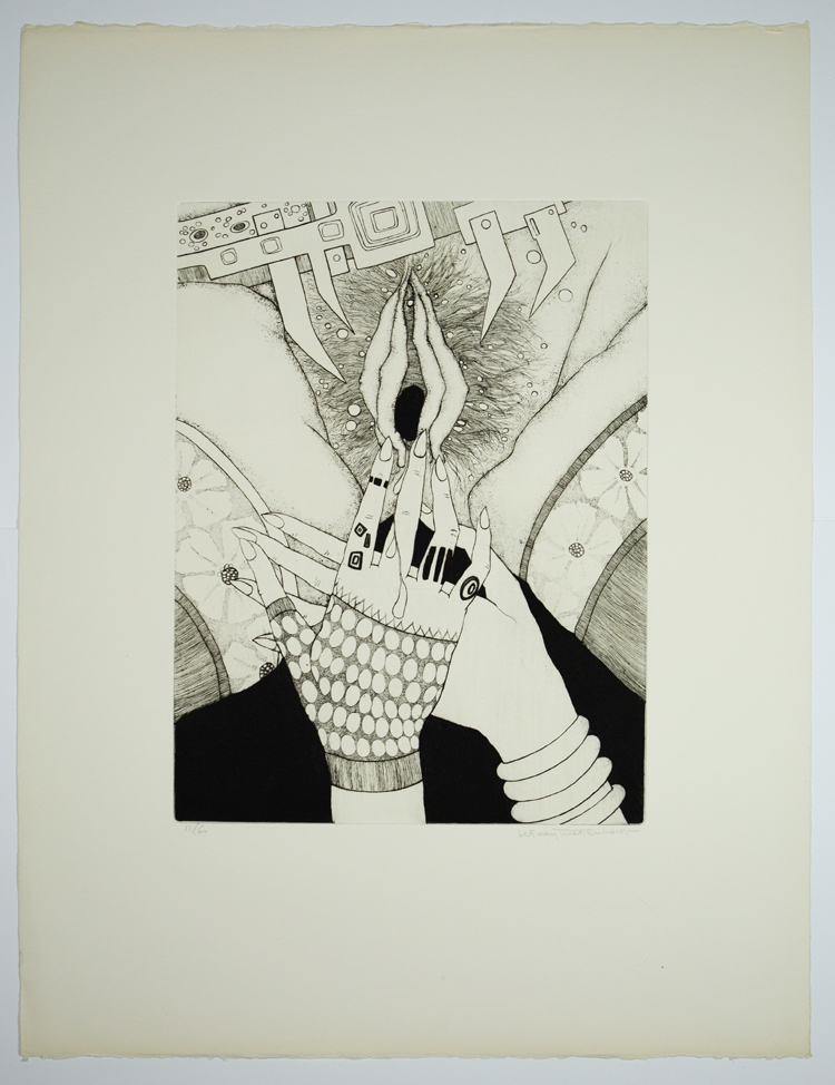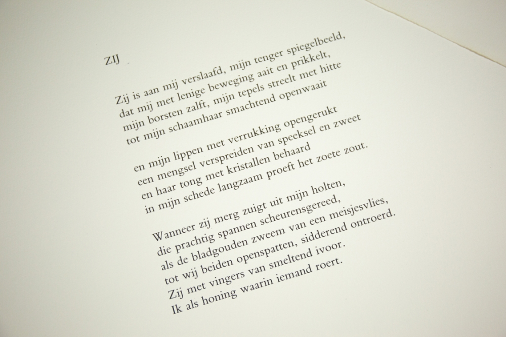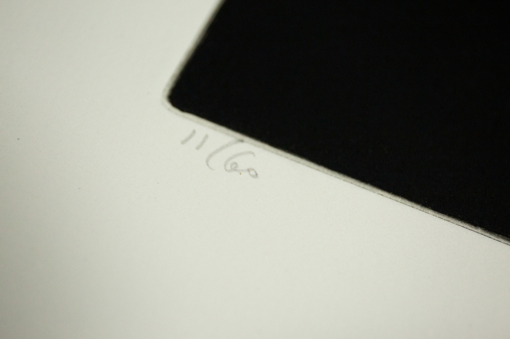 Etching by Jef van Tuerenhout (1926-2006) from the series "De zangen van lesbos". Is accompanied by a poem by Paul pike on the same paper, Vélin d'Arches 250 gr and was printed by Roger Van Akkelijen in Antwerp.