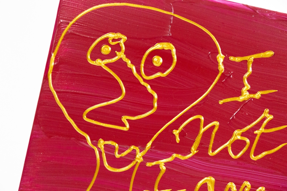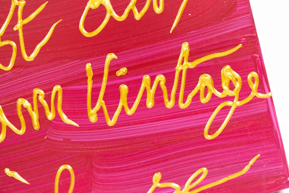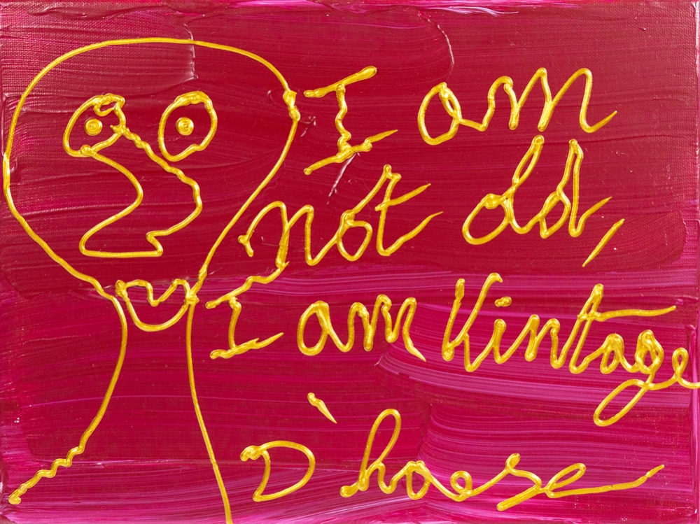 Painting with acrylic paint by Hannes D'Haese, with the inscription "I am not old, I am vintage". The work is signed by hand.