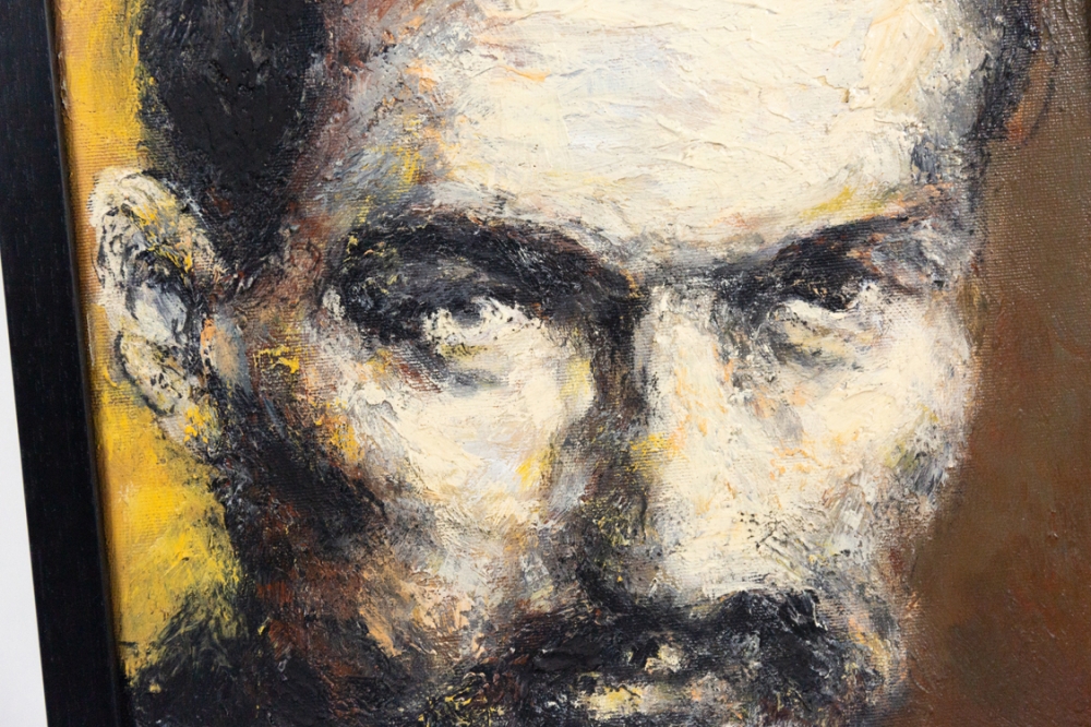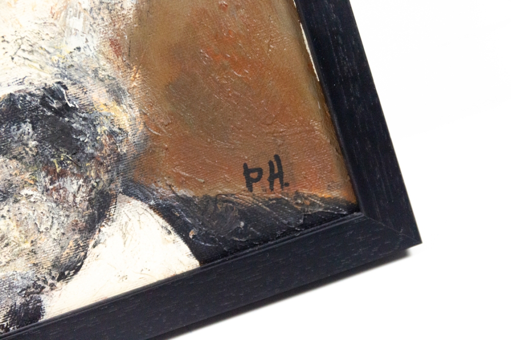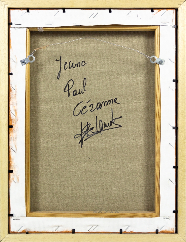 Jeune Paul Cézanne is a painting on canvas by Peter Heylands . Peter Heylands is an international artist and performer who is mainly active abroad. This painting comes from a series of paintings about famous (mainly French) artists. This painting depicts the French artist Paul Cézanne .